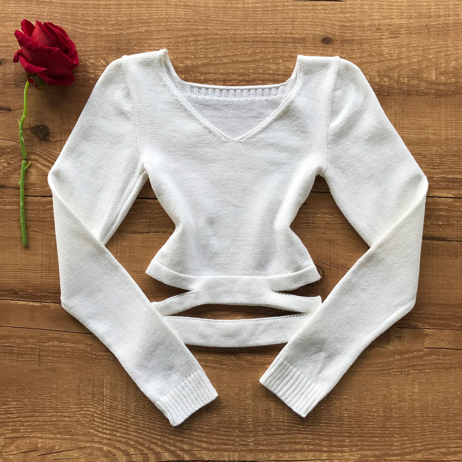 CROPPED MODAL MANGA LONGA DETALHE NA CINTURA OFF