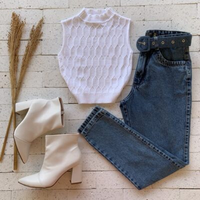 Contudo, com um design único e trama detalhada do cropped adicionam um elemento de elegância e charme à peça. Sobretudo, o tom off-white traz um ar de elegância, sendo uma escolha atemporal para ocasiões diferentes. Portanto, seja para um evento especial ou para um look casual-chique, esse cropped é capaz de elevar seu estilo a outro nível.