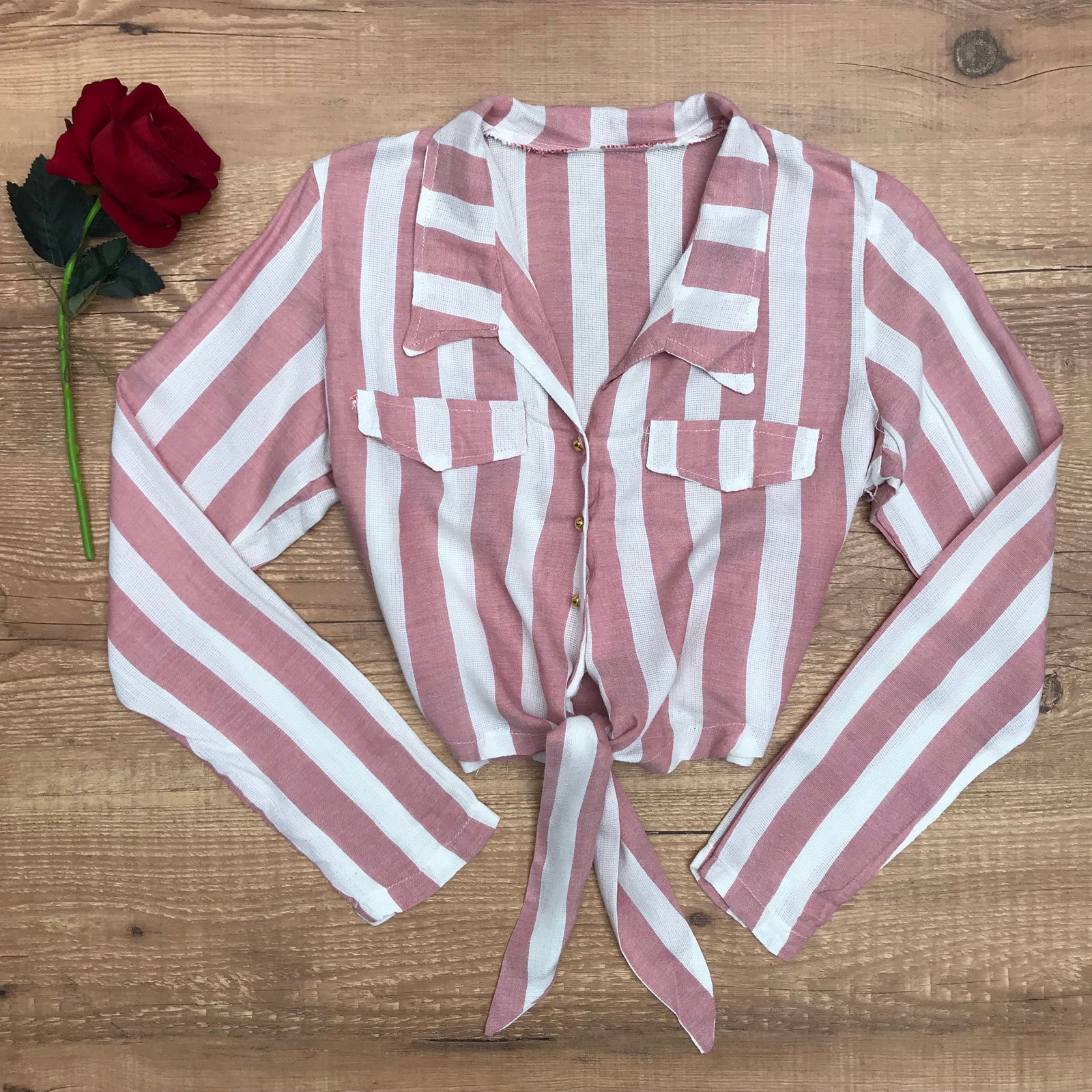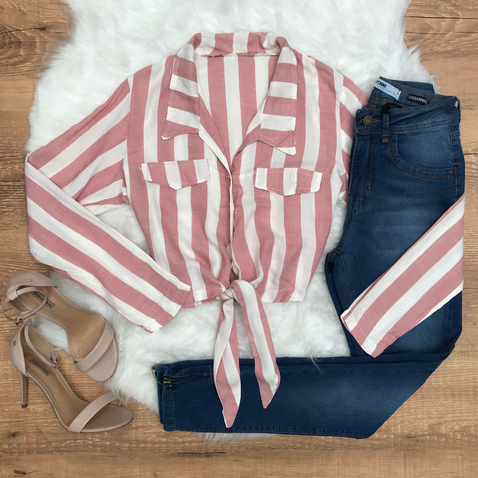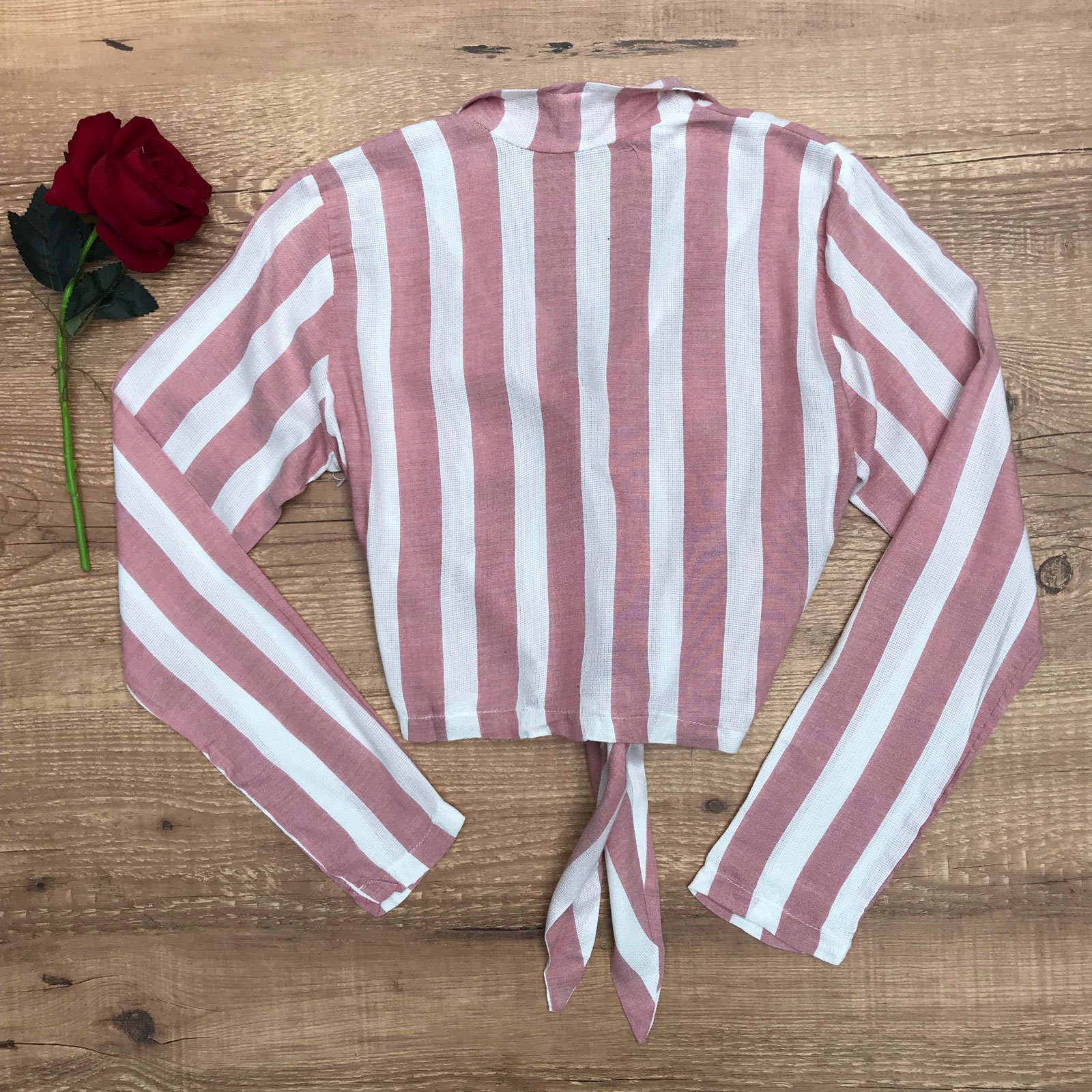 CROPPED NÓZINHO MANGA LISTRAS ROSÉ