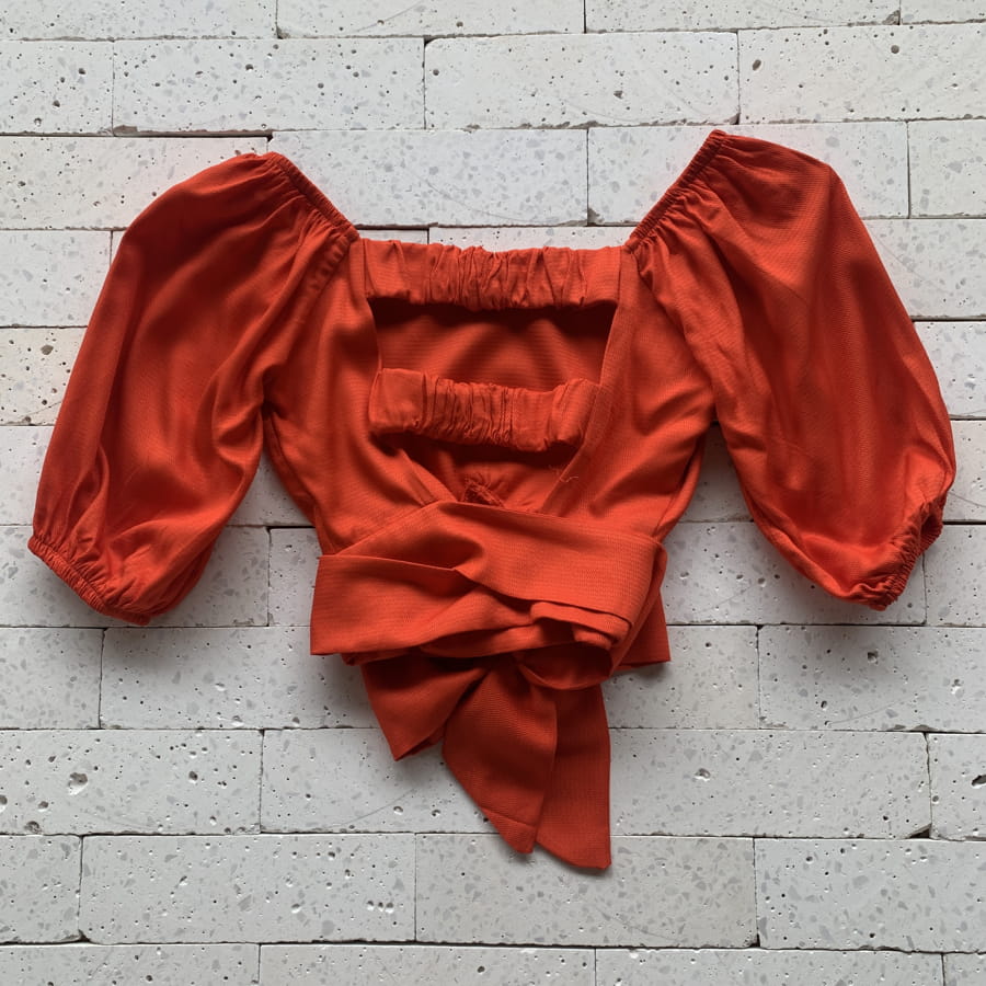 CROPPED PRINCESA COM ELÁSTICO NAS COSTAS E AMARRAÇÃO LARANJA