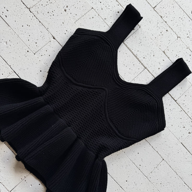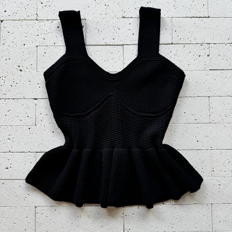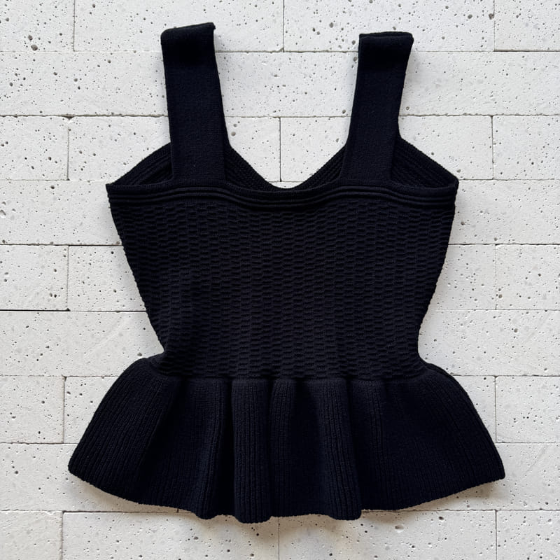 CROPPED REGATA MODAL PEPLUM DETALHADO PRETO – Elegância e Conforto em Tricô Ajustado