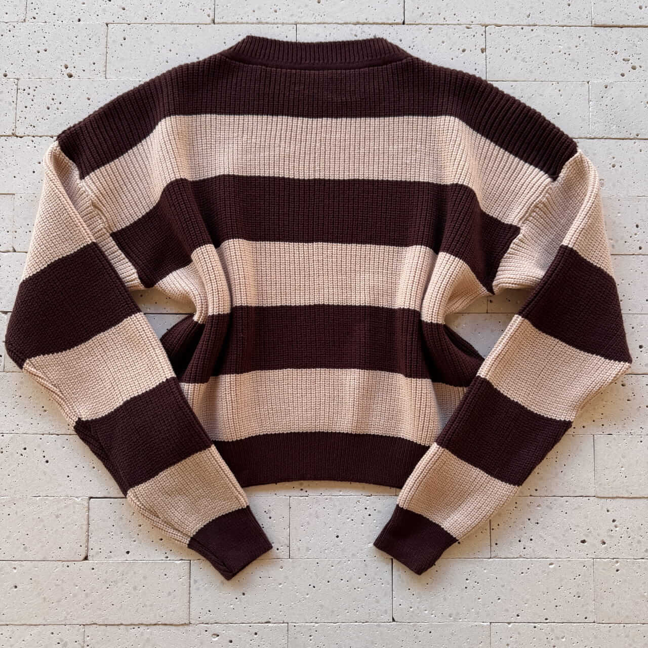 CROPPED TRICO ALONGADO MANGA LONGA LISTRADO CAFÉ E BEGE