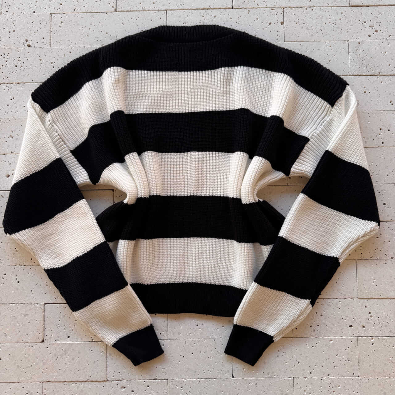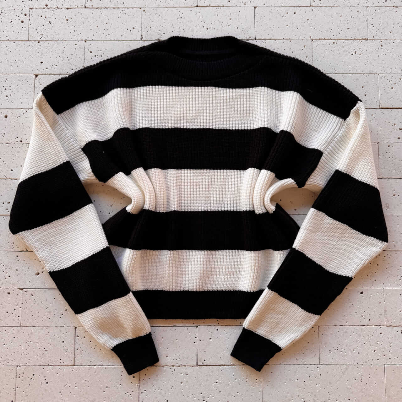 O Cropped Tricô Alongado Manga Longa Listrado Preto é a peça perfeita para quem busca um visual moderno com toque confortável. Com modelagem levemente solta e comprimento cropped alongado, ele traz equilíbrio entre estilo e praticidade. As listras horizontais em preto e off criam um contraste elegante, enquanto o tricô encorpado com textura canelada oferece aconchego e sofisticação. Possui gola redonda, mangas longas e punhos ajustados, garantindo um caimento bonito e versátil.