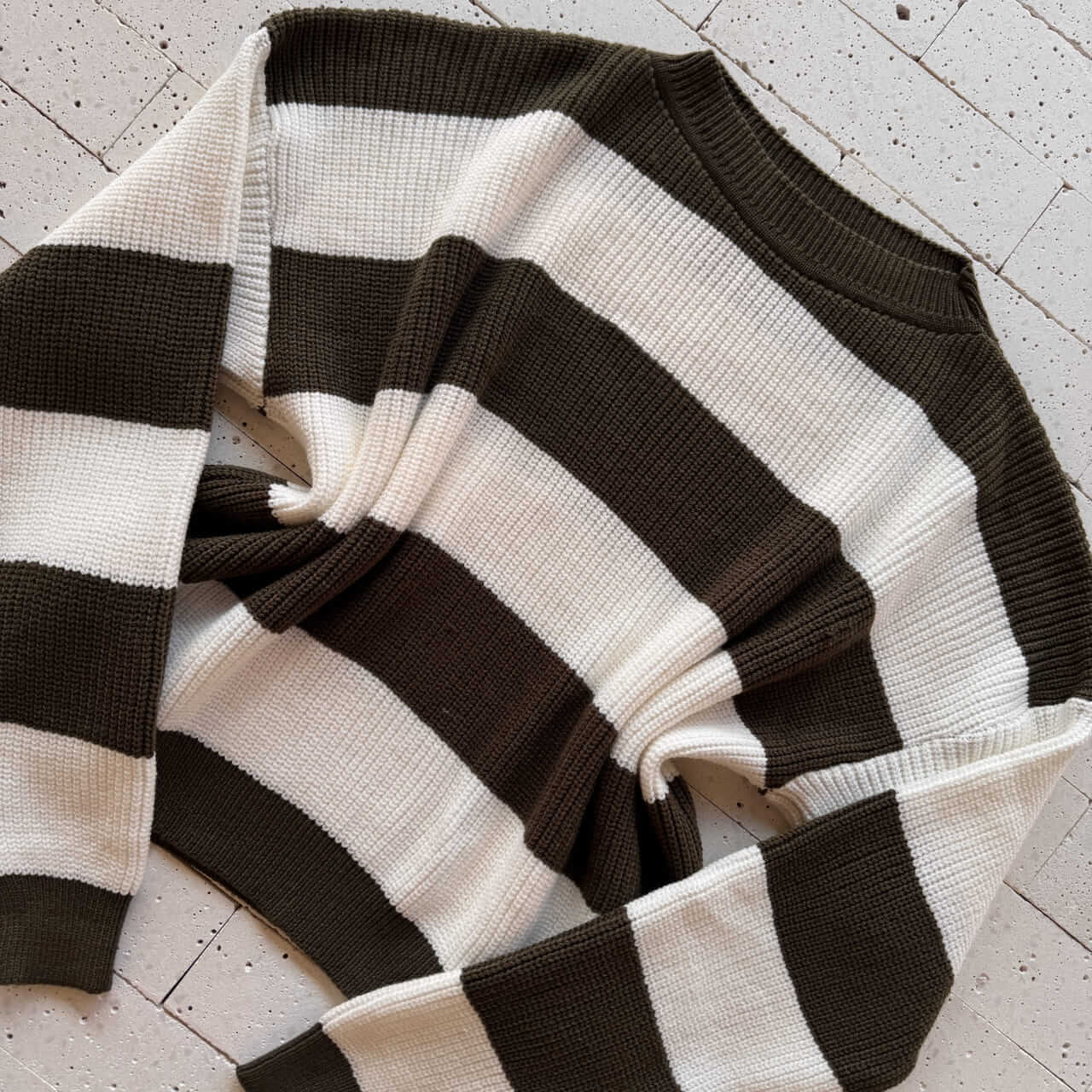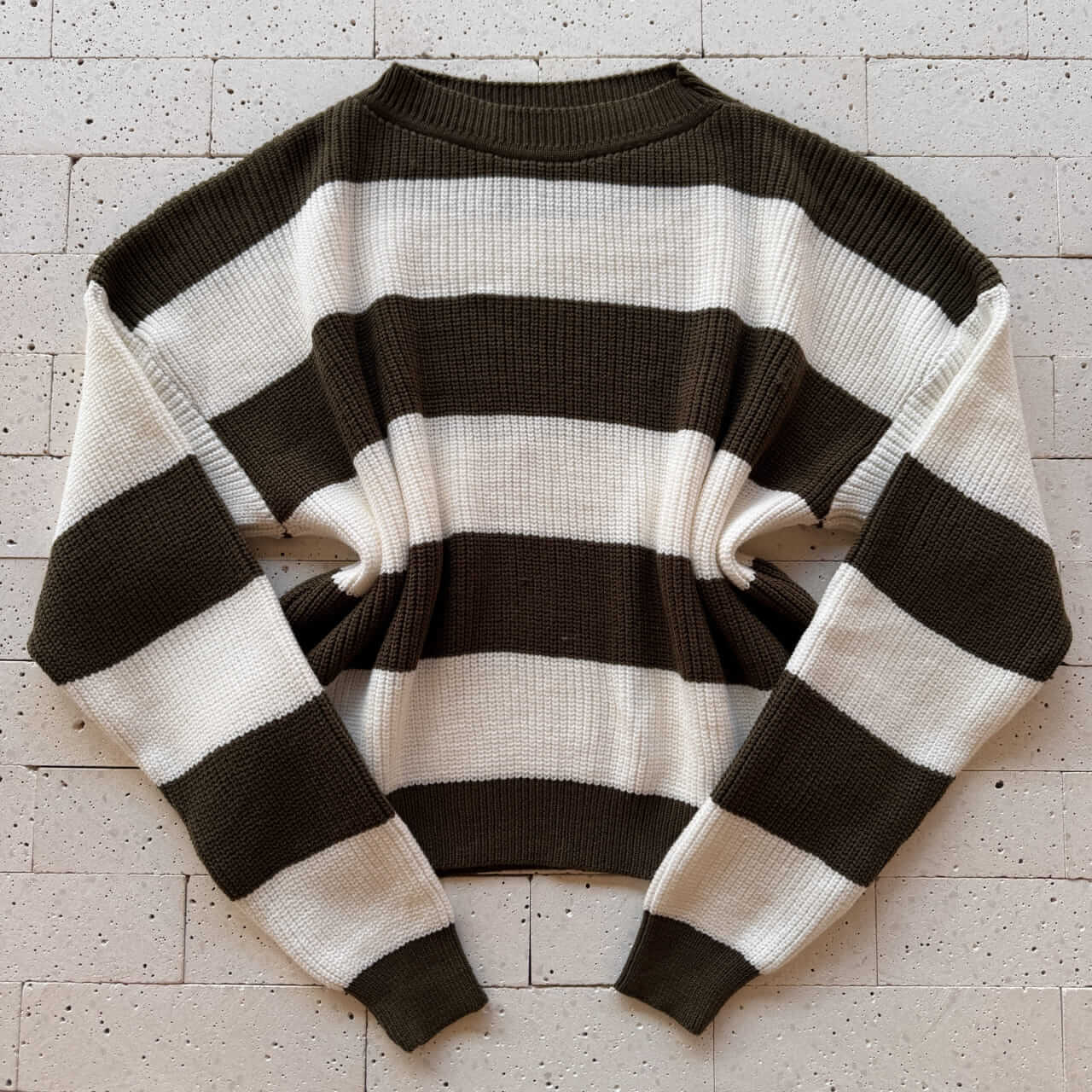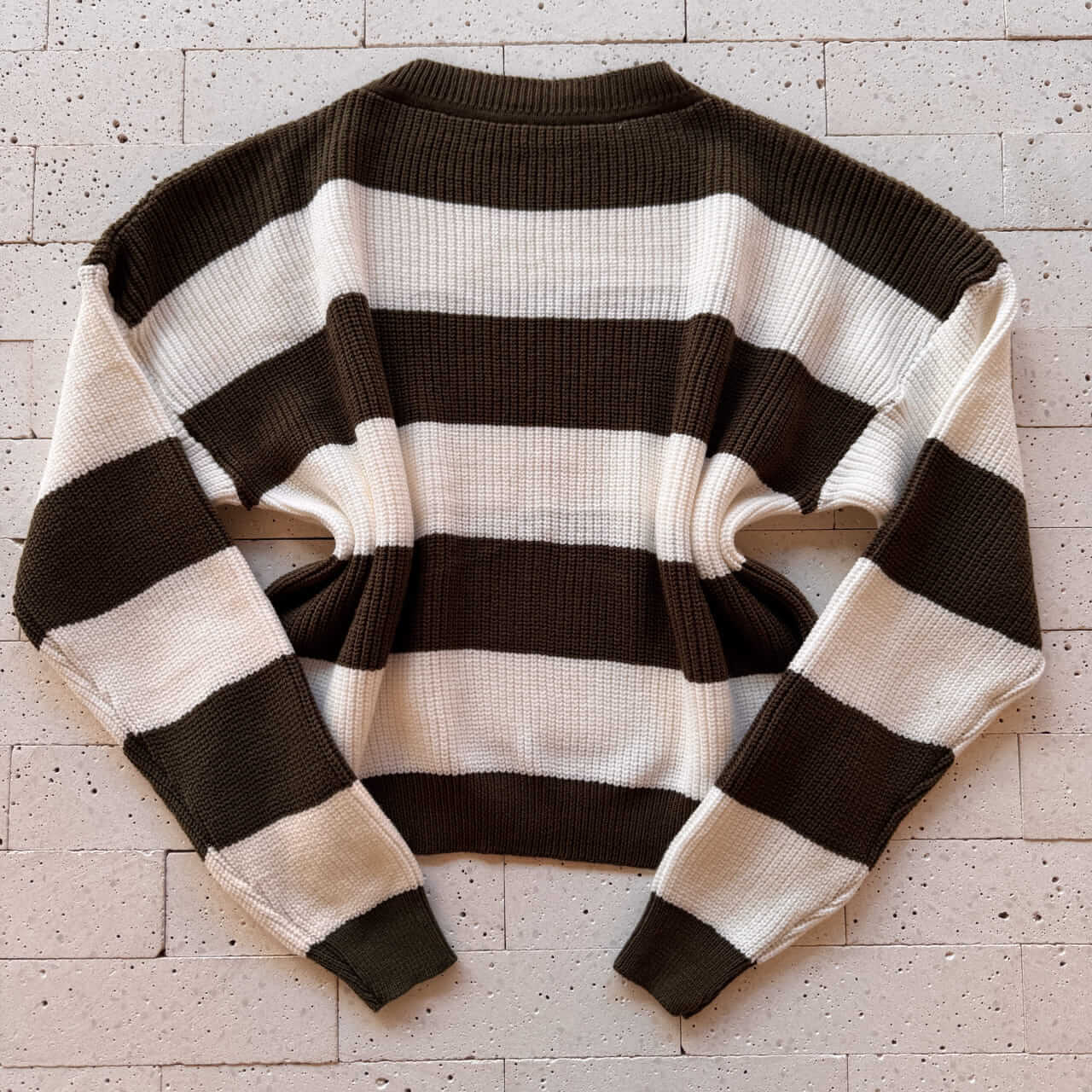 Cropped Tricô Alongado Manga Longa Listrado Verde Oliva – Estilo Casual com Toque Natural