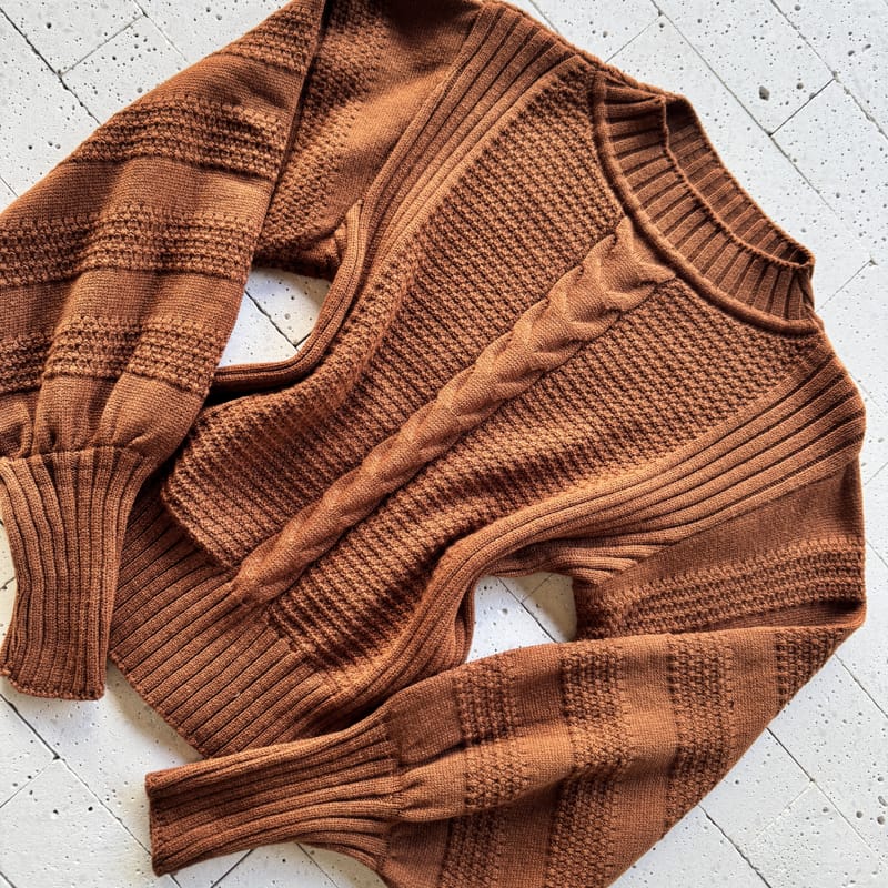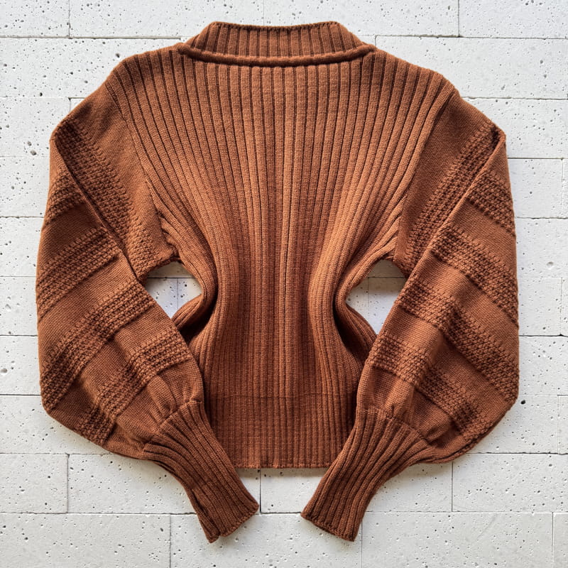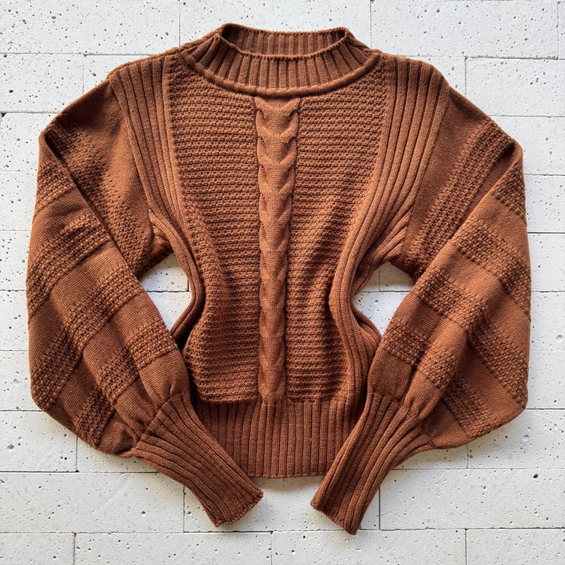 CROPPED TRICO ALONGADO MANGA OVERSIZED COM TRAMA FRONTAL MARROM