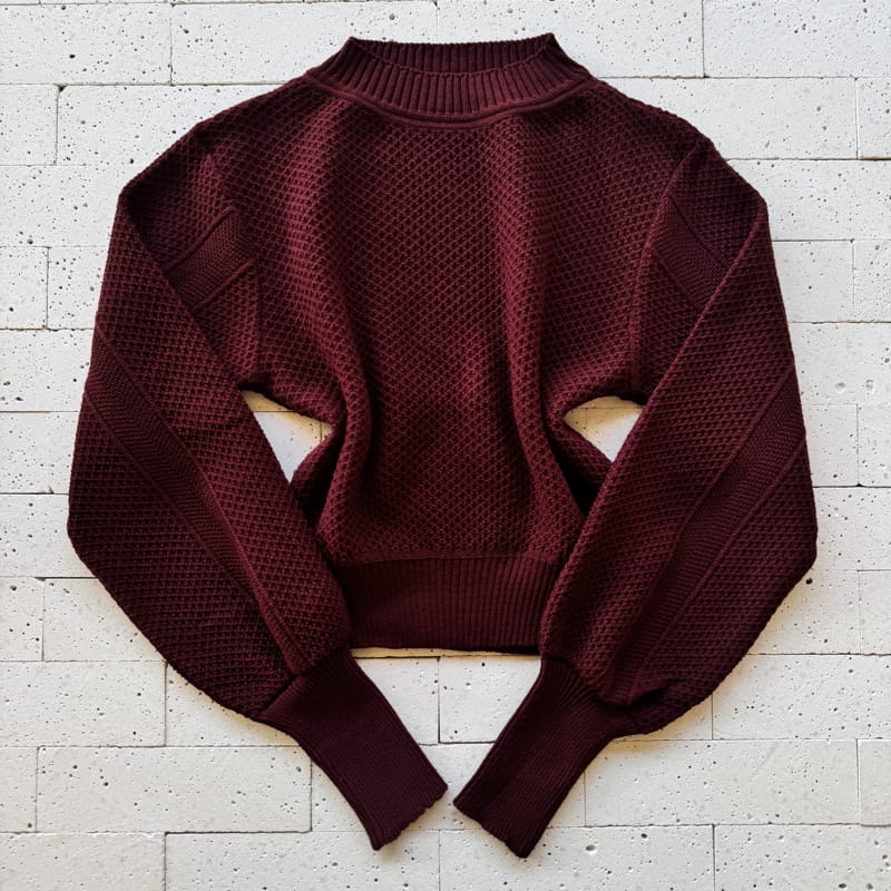 CROPPED TRICO ALONGADO MANGA OVERSIZED VINHO