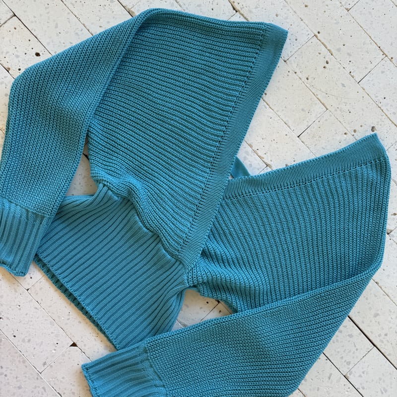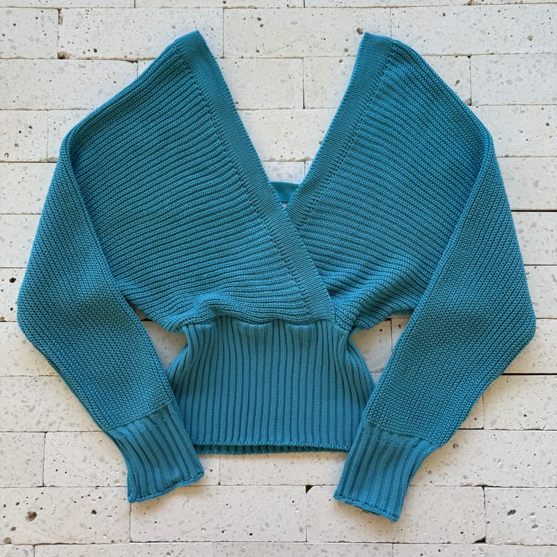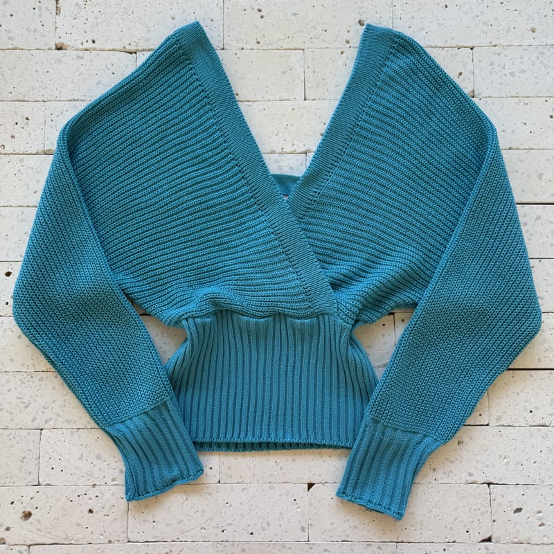 CROPPED TRICO MANGA LONGA DECOTE TRANSPASSADO AZUL