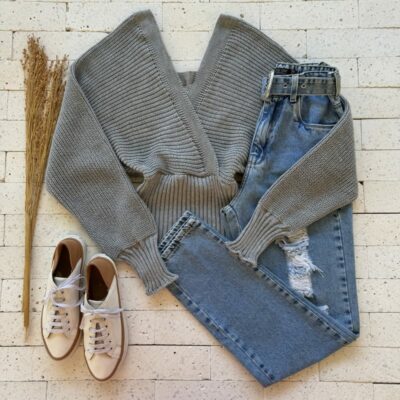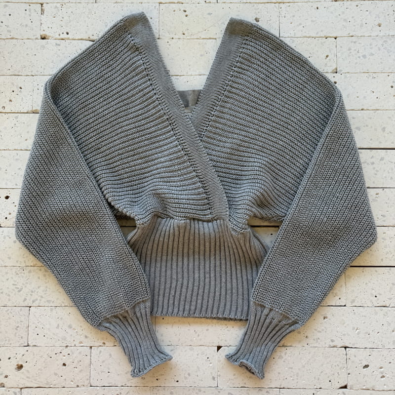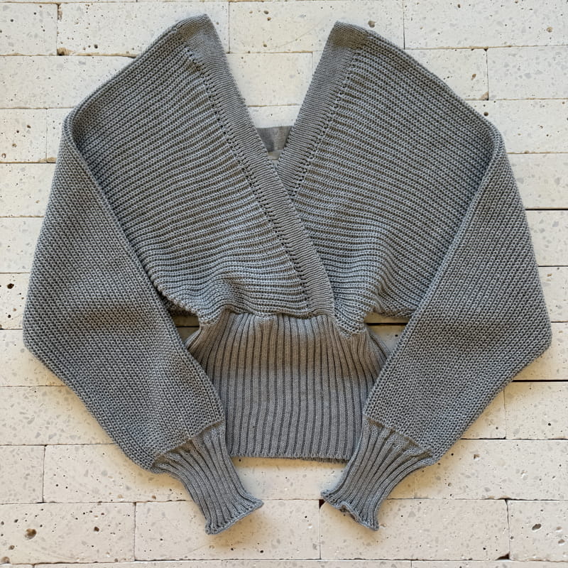 CROPPED TRICO MANGA LONGA DECOTE TRANSPASSADO CINZA