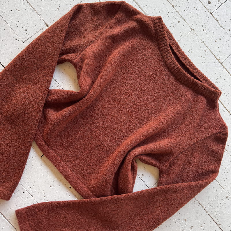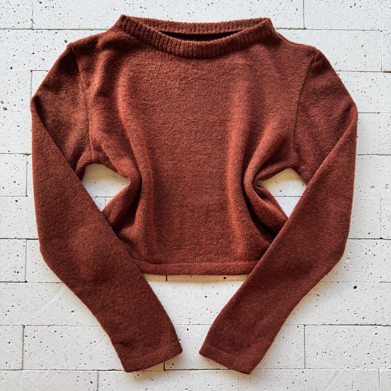CROPPED TRICÔ MOUSSE COM MANGA LONGA CARMIM – Toque Aconchegante com Modelagem Slim
