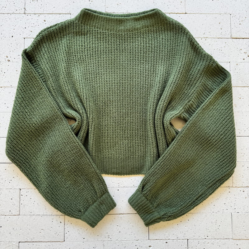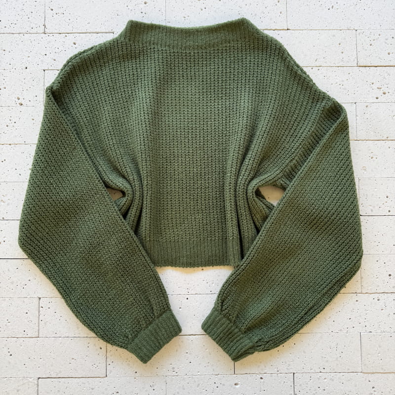 CROPPED TRICÔ MOUSSE SOLTINHO MANGA LONGA VERDE OLIVA – Elegância Natural com Toque Aconchegante
