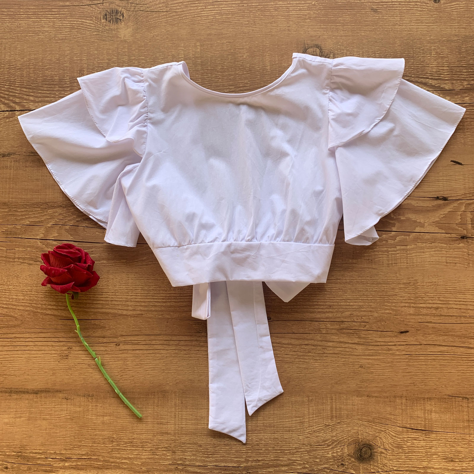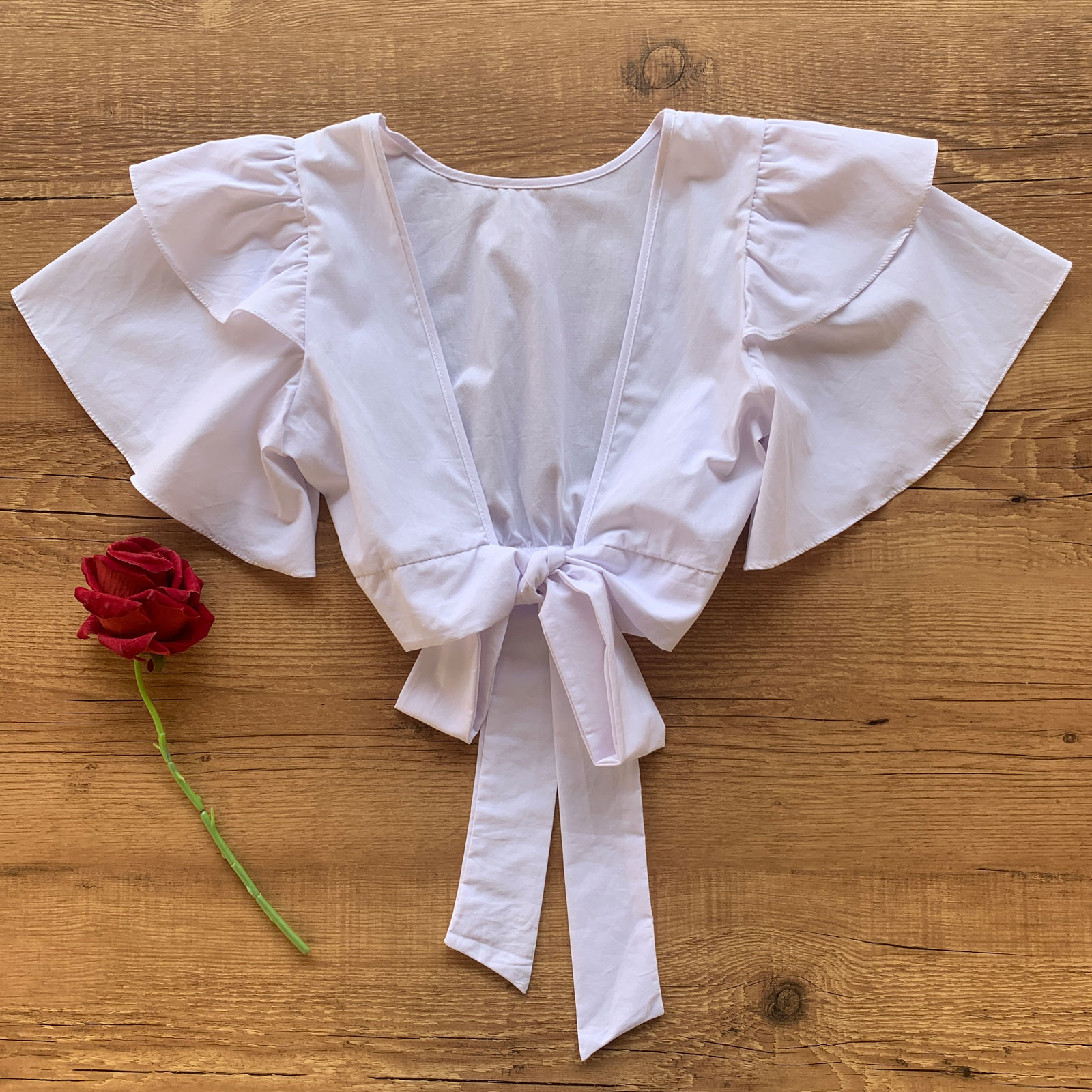Como usar seu Cropped Tricoline Manga Babados e Costas Aberta OFF