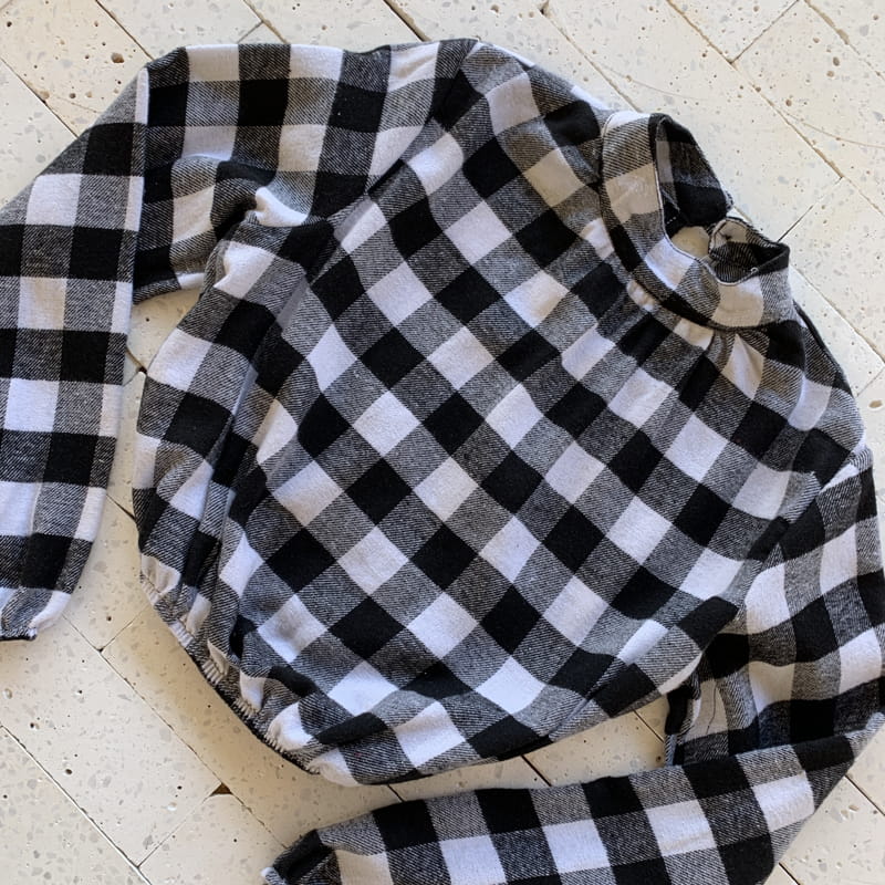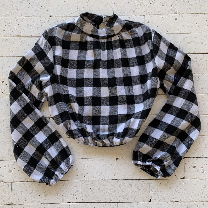 Destaque sua personalidade com o Cropped Xadrez Manga Longa Preto