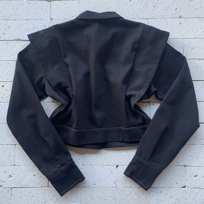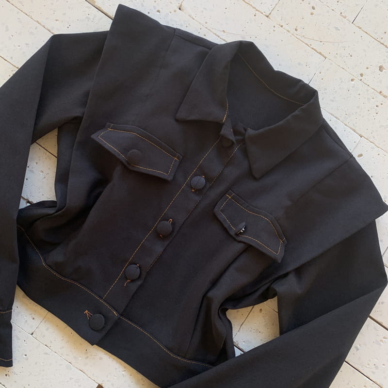 Jaqueta Cotton Curta Bolso Fake Luxo Preta – Dondoca