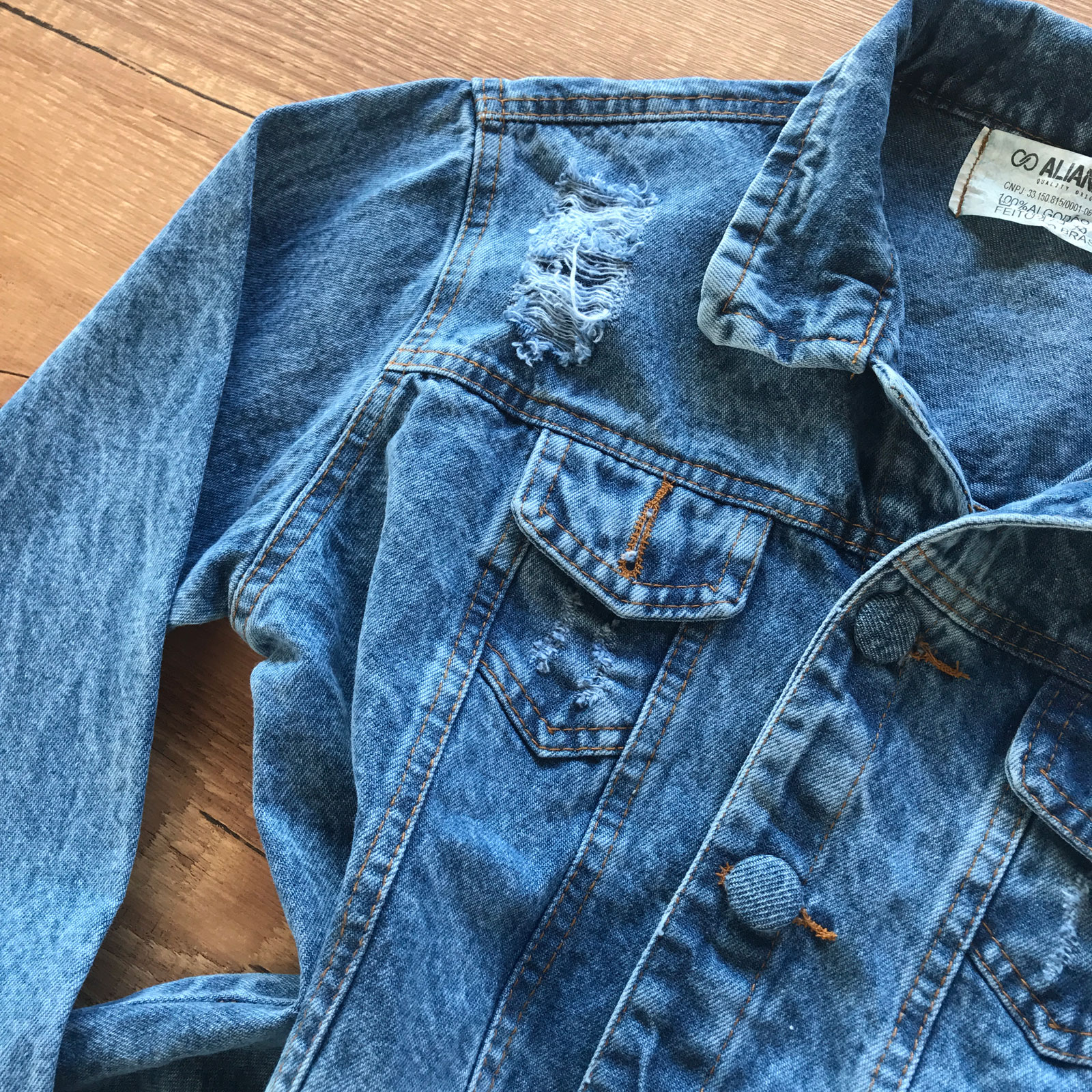 O jeans estonado é um clássico que nunca sai de moda e caracteriza-se pelo efeito “desbotado”, com aspecto de que a peça teve contato com alvejantes. Os detalhes desfiados aliados à lavagem de jeans média tornam a peça única e moderna. Use o modelo para compor sobreposições, com peças mais sequinhas por baixo deixando a jaqueta em evidencia. Nos dias mais frios vale uma calça jeans, que pode ter a lavagem mais escura para criar um contraste visual. Abuse dos acessórios. As correntarias combinam com este estilo de look, bem como os coturnos nos pés!