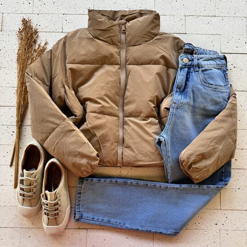 JAQUETA PUFFER LUXO NUDE – Estilo e Conforto com Proteção Térmica