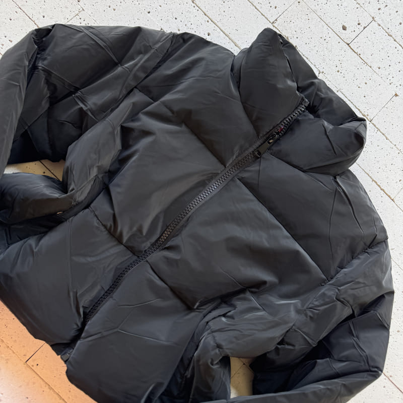 JAQUETA PUFFER LUXO PRETA – Modelagem Imponente e Gola Alta