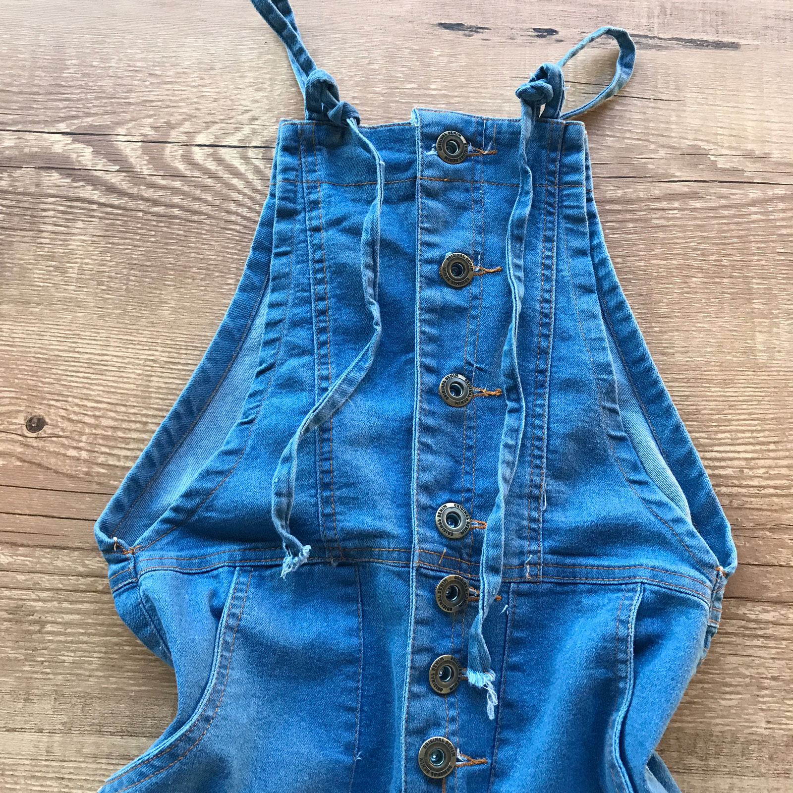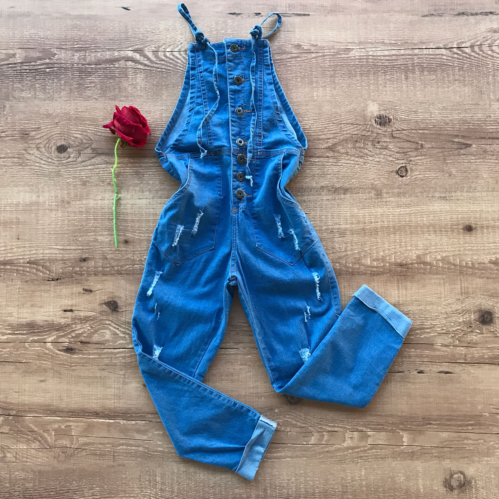 JARDINEIRA JEANS DETALHES DESFIADOS