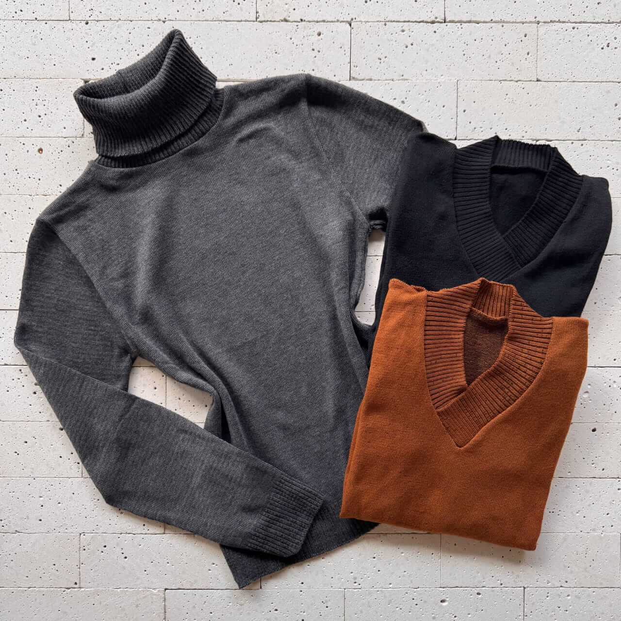 Kit 3 Blusas de Tricô Essenciais – Grafite, Telha e Preta