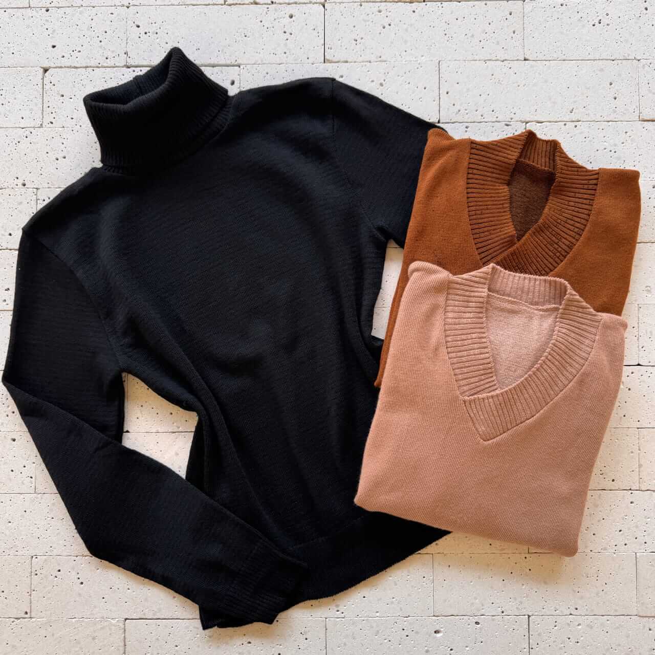 O Kit 3 Blusas de Tricô Femininas – Preta, Telha e Nude é uma solução inteligente para quem quer se vestir bem com mais facilidade.
