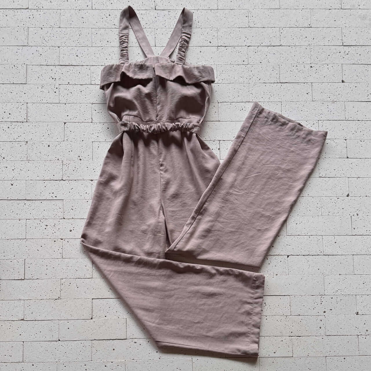 • Modelagem: Macacão longo com pernas amplas e cintura marcada