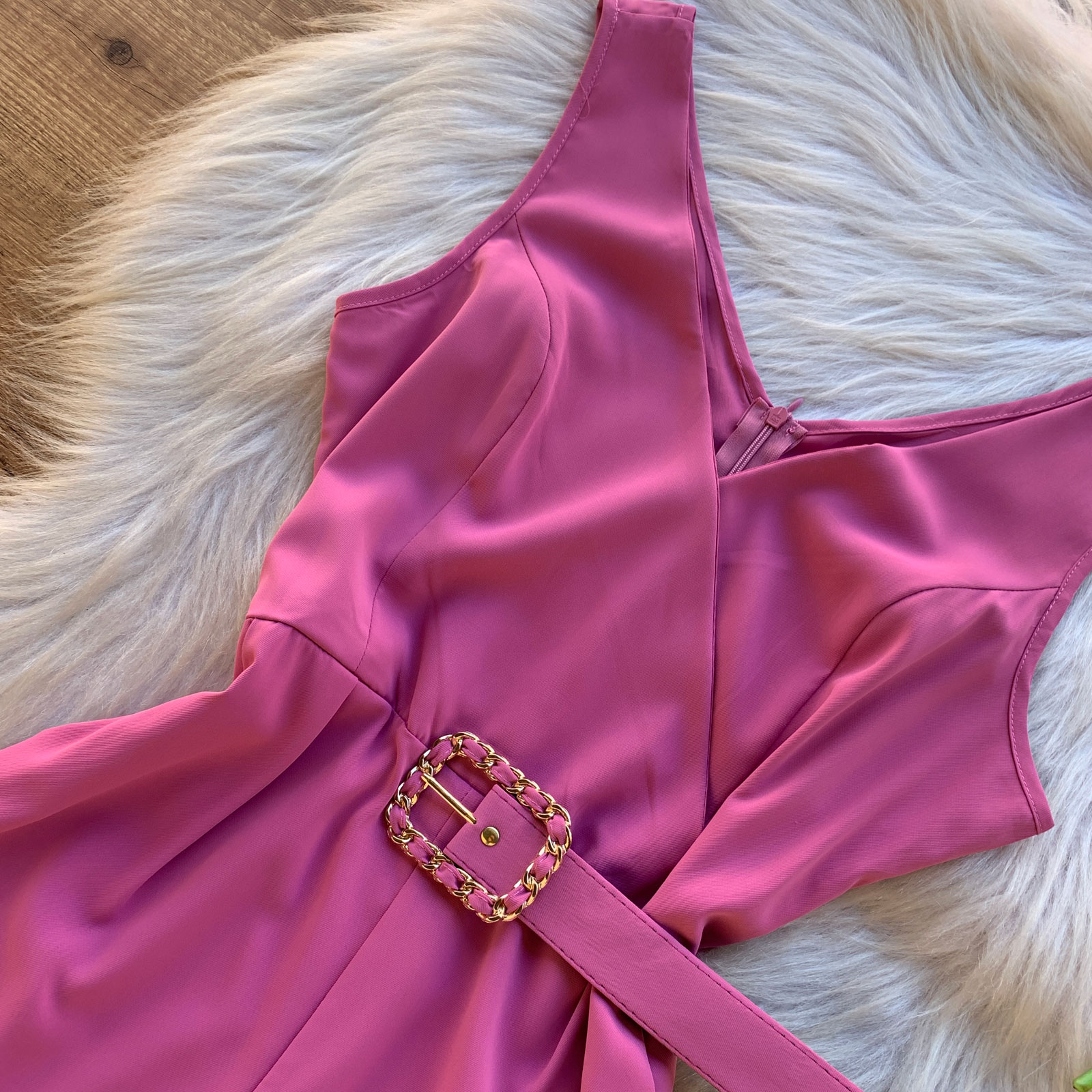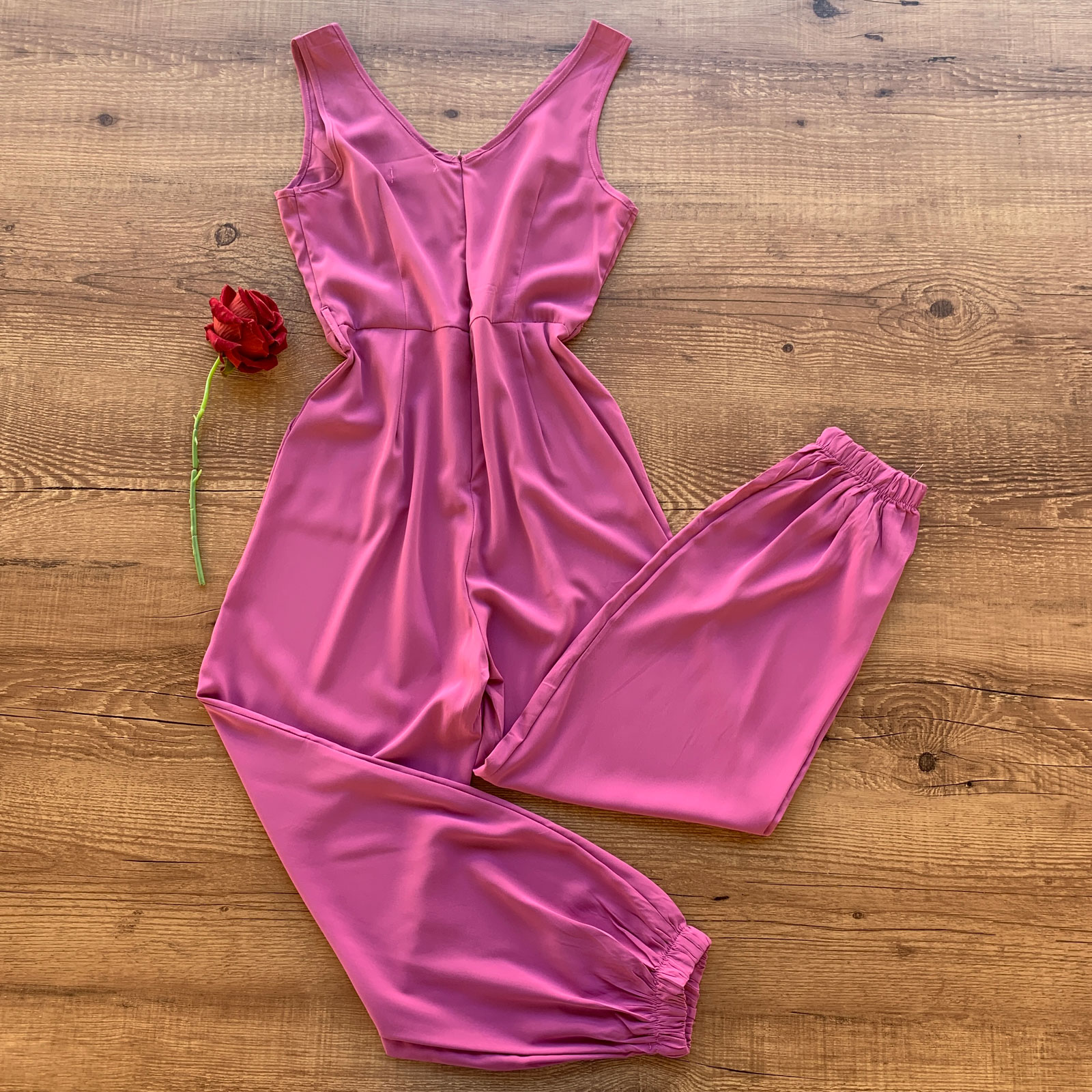 MACACÃO JOGGER COM CINTO TRABALHADO ROSA