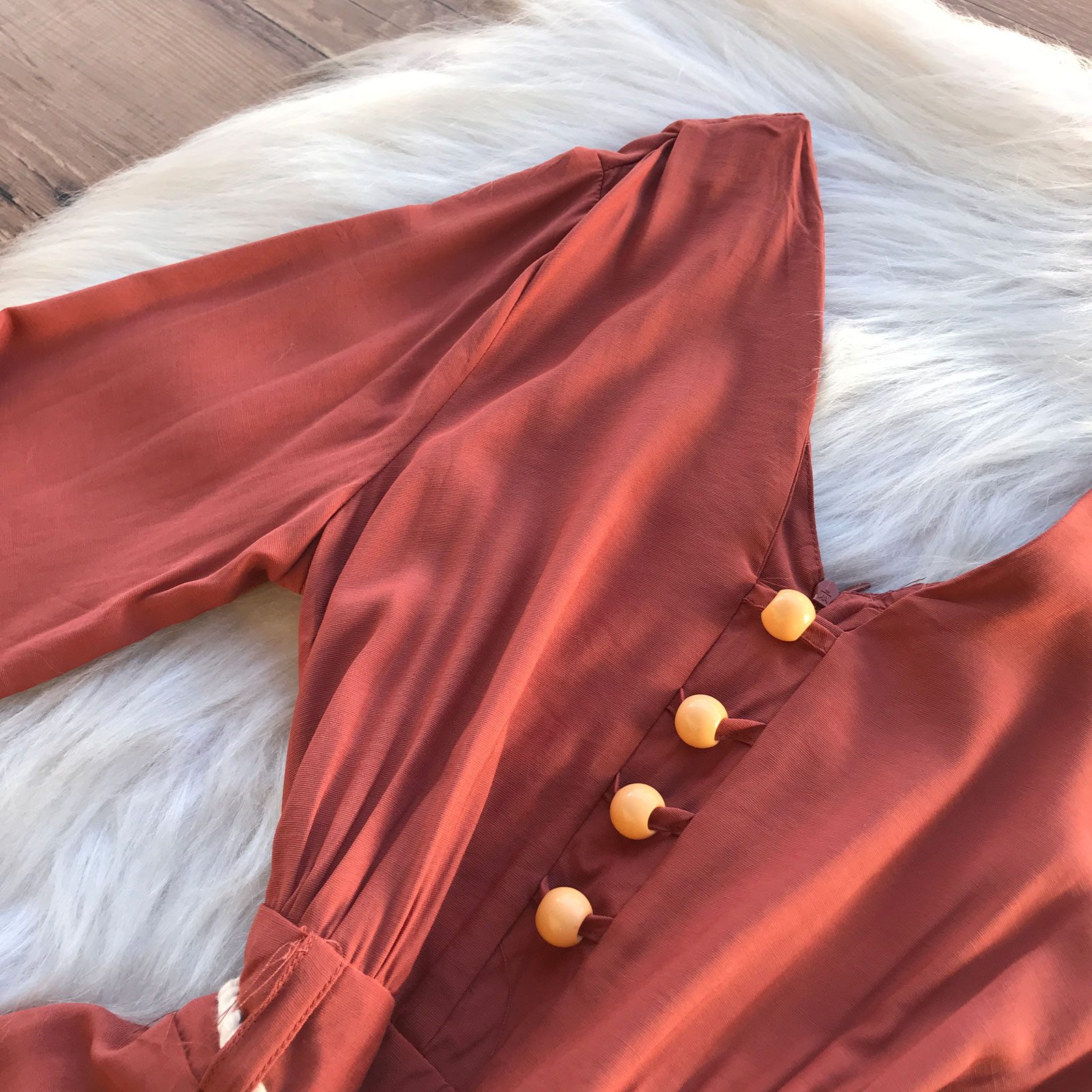 O Macacão Manga Longa Detalhe Resinado Com Cordão Telha é aquela peça perfeita para montar looks práticos e modernos. O crepe no qual é fabricado é leve e fluído, oferecendo um caimento perfeito. A peça possui decote em formato A invertido, que a torna diferenciada. Os detalhes ficam por conta das aplicações resinadas no busto e o cordão para amarração acintura a peça.