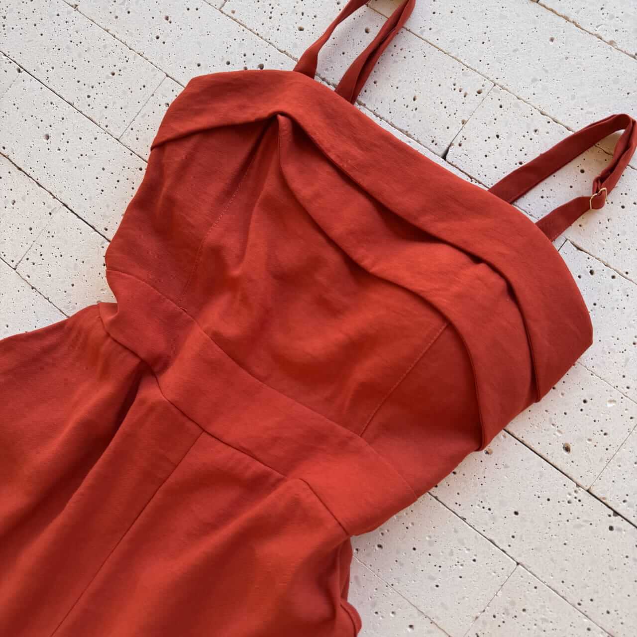 MACACÃO MARRANT DETALHE PREGAS NO DECOTE CARMIM