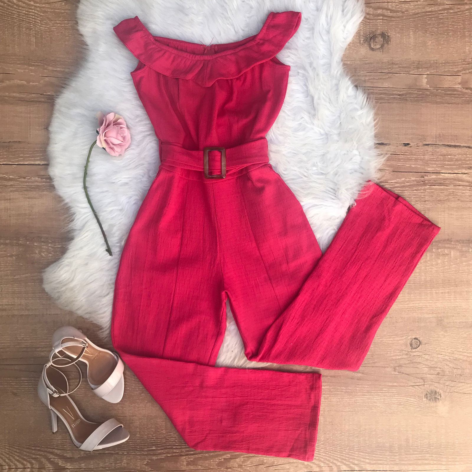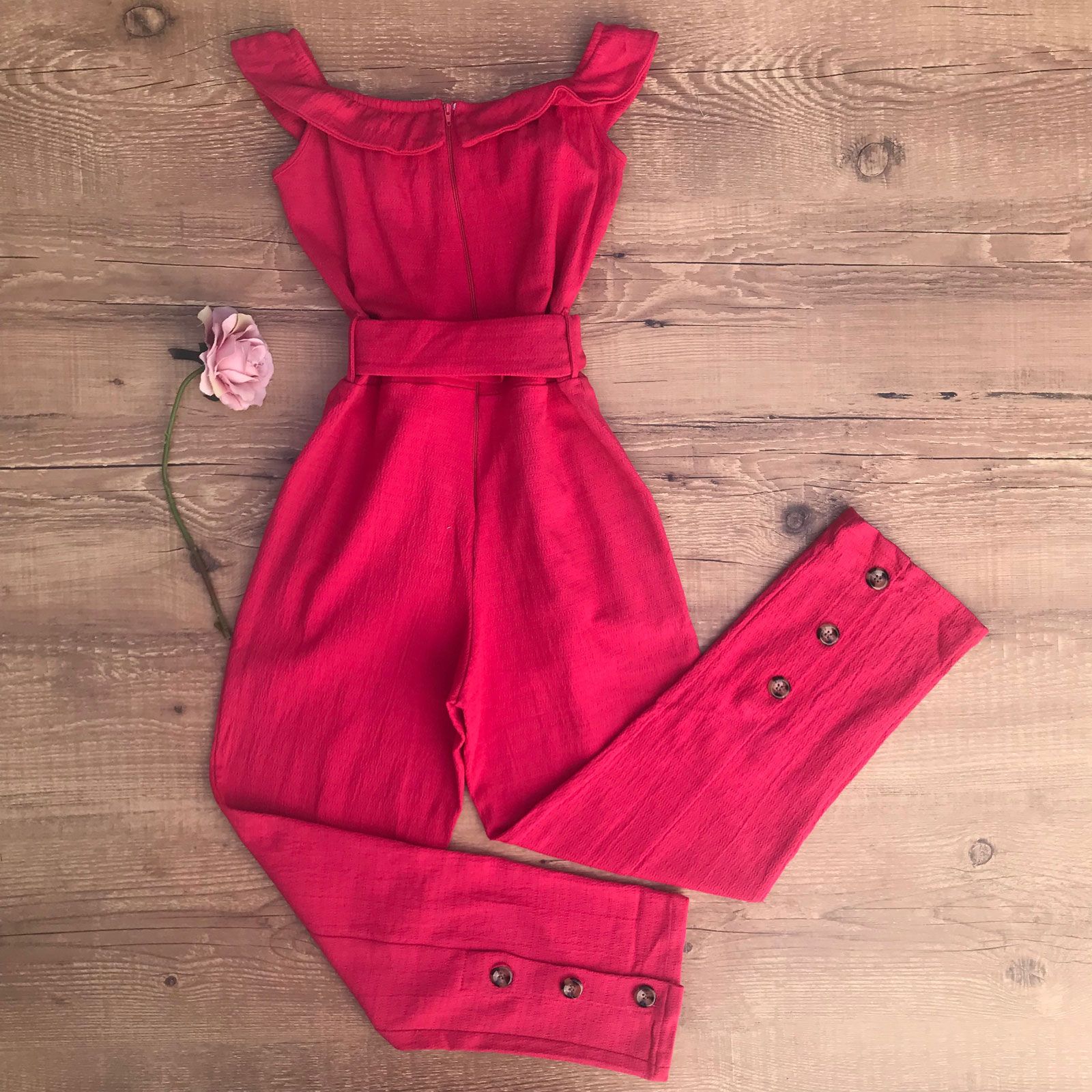 MACACÃO OMBRO A OMBRO BOTÕES NA BARRA PINK