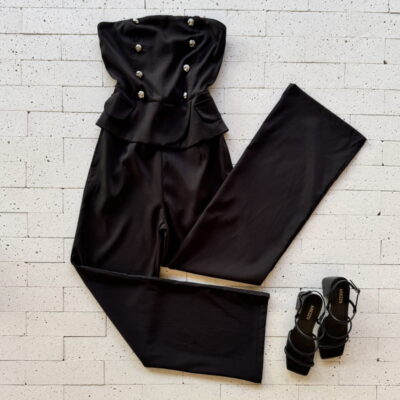 MACACÃO TOMARA QUE CAIA DETALHE BOTÕES LUXO PRETO – Clássico, Moderno e Atemporal