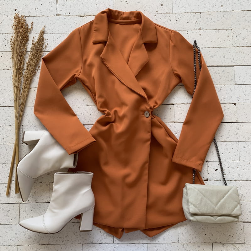 Arrase com o Macaquinho de Alfaiataria Social Luxo Telha!