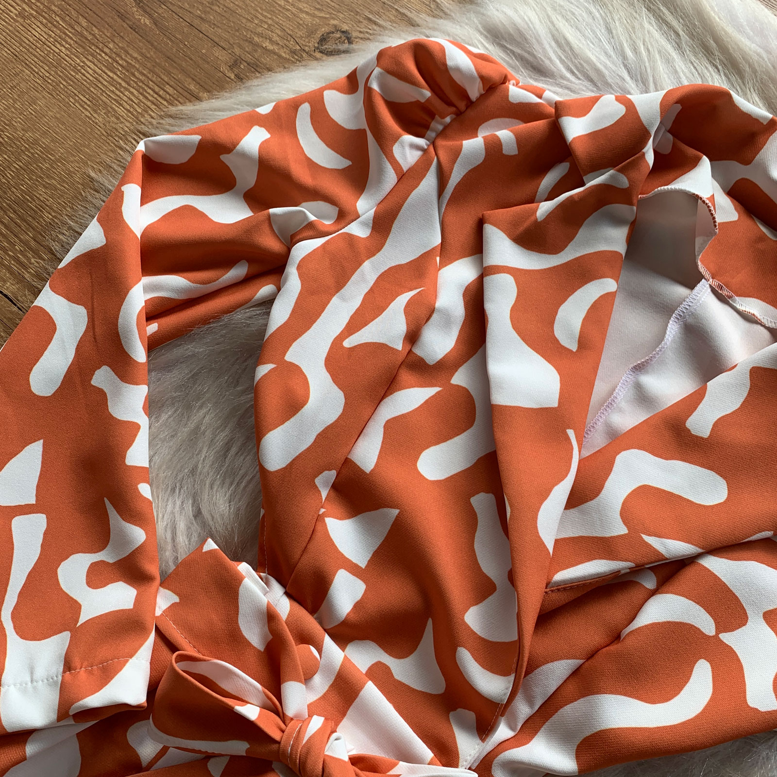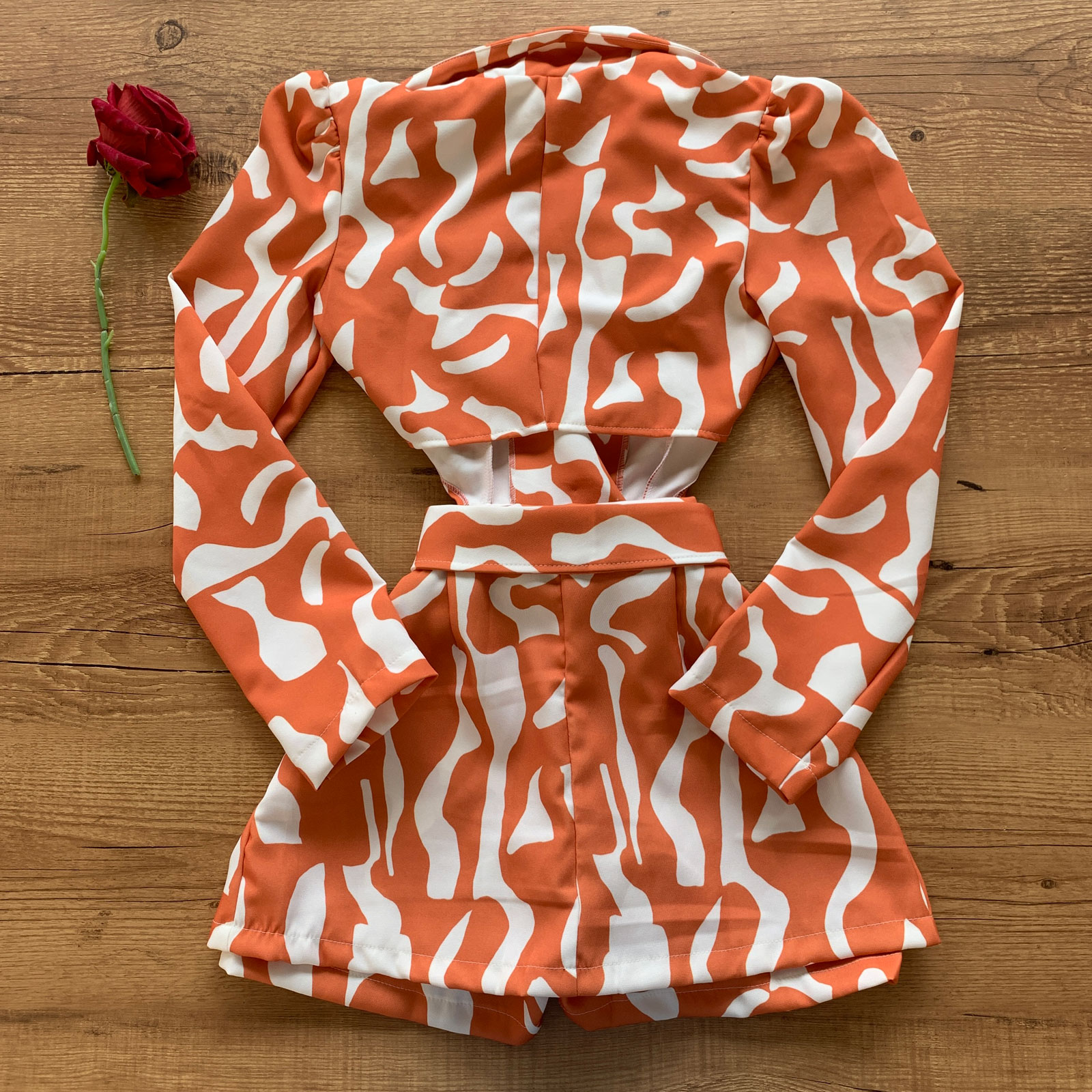 O Macaquinho Bufante com Amarração Animal Print Laranja se tornará a peça completa favorita da sua coleção! Confeccionado em tecido de toque suave, ideal para dias frescos ou até mais quentes. Possui uma modelagem especial com decote em V transpassado e abertura posterior que favorece a silhueta e busto além de trazer uma sensualidade sem vulgaridades. Contém botões encapados funcionais frontais na sobreposição da parte inferior, com zíper inserido no short facilitando na hora de vestir e garantindo seguridade na abertura. A peça possui manga longa com carcela longa e botão encapado e detalhe bufante que valoriza os ombros e sugere postura além da gola esporte que confere um look mais alinhado. O macaquinho feminino soltinho conta ainda com uma faixa para amarração opcional que beneficia a cintura junto do detalhe da costura curvada. Sobretudo o charme desta peça vai ganhar seu coração!