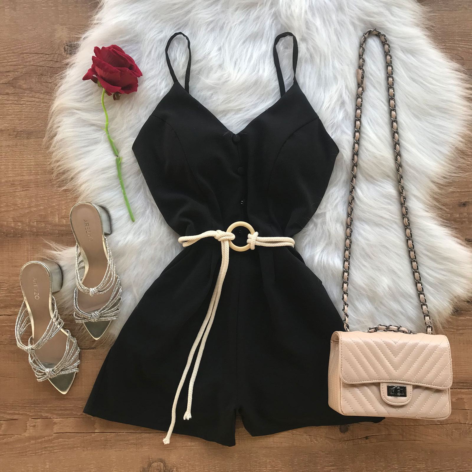 Como usar seu Macaquinho Cinto Em Cordão Preto