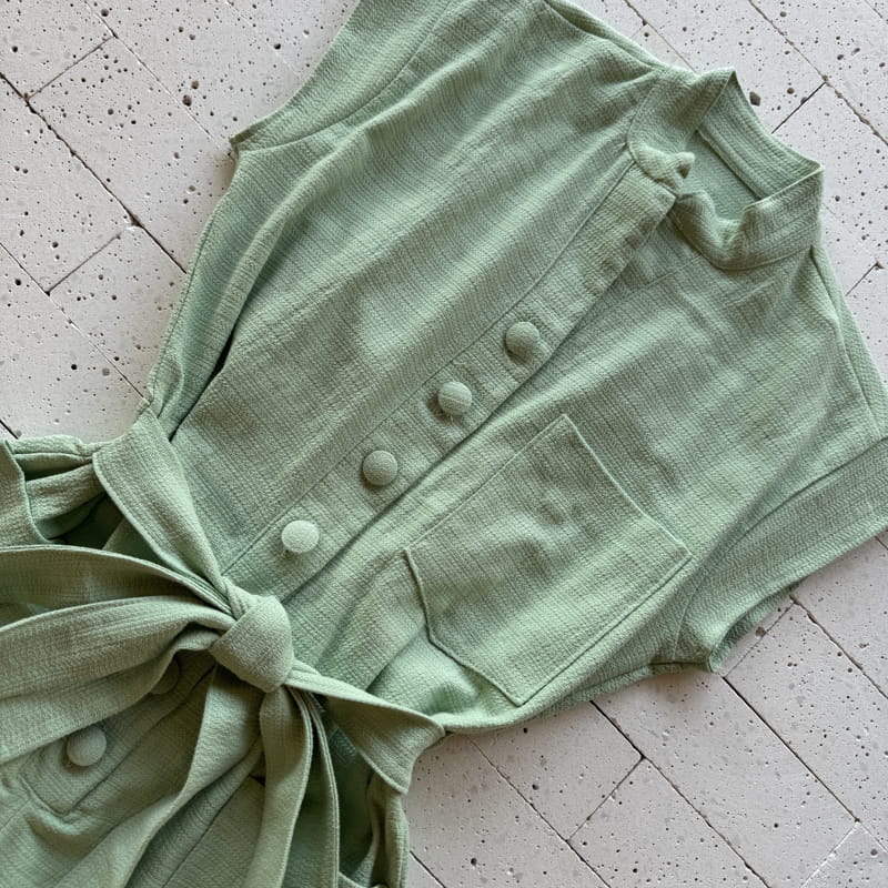 Macaquinho com Elástico na Cintura e Amarração Verde – Sofisticação com Conforto