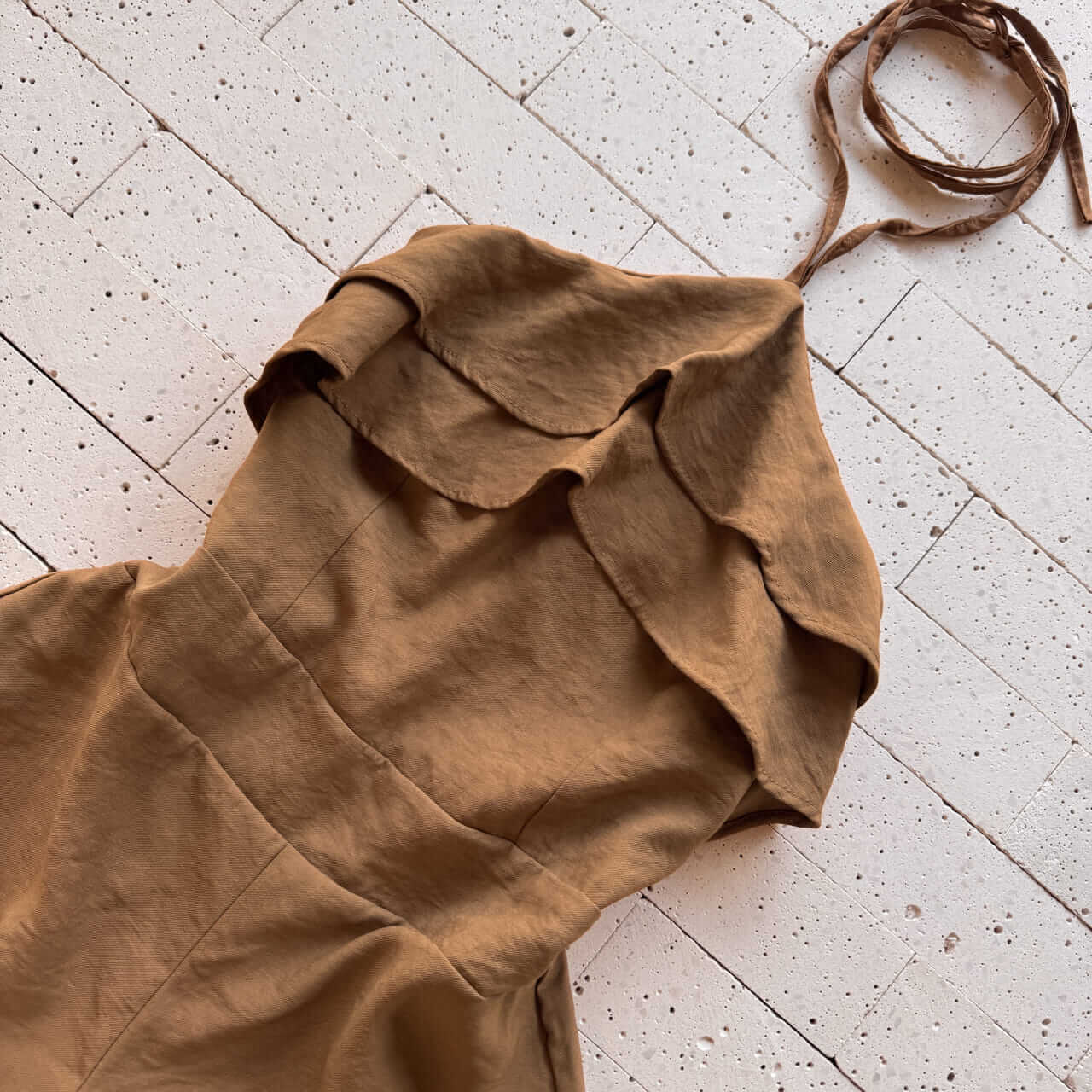 MACAQUINHO FEMININO COM BABADO NO BUSTO NUDE – ELEGÂNCIA E DELICADEZA