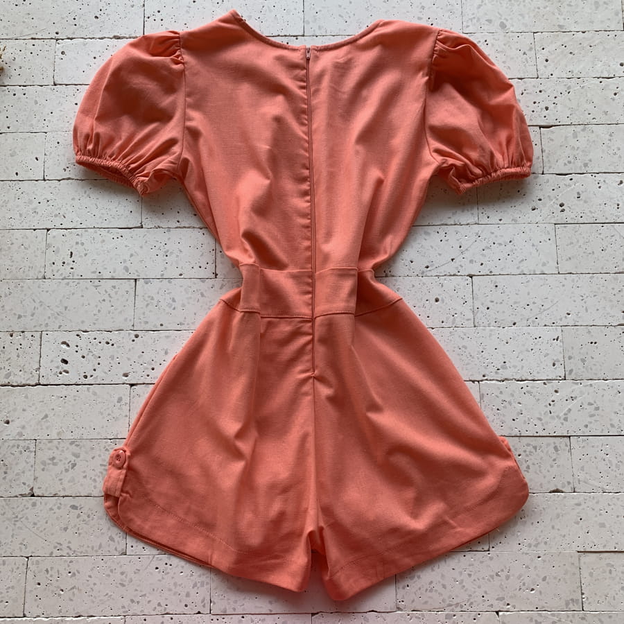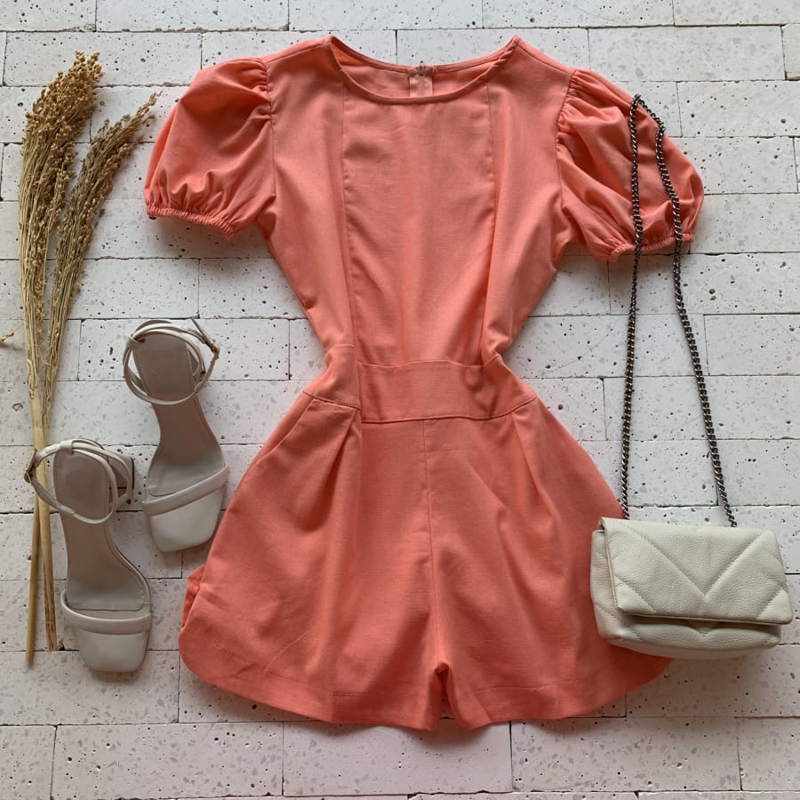 Com uma modelagem única o macaquinho com manga princesa vai fazer você se apaixonar! Peça inteiriça que se torna a opção perfeita para os dias de verão. Atende a todos os estilos devido a facilidade em composições e pode ser incorporado aos looks do dia a dia. Para uma proposta estruturada aposte em sandálias de tiras, pulseiras, argolas clássicas e bolsa. O casual e despojado pode ser composto com tênis básicos, brincos de perolas, óculos escuros e colares.