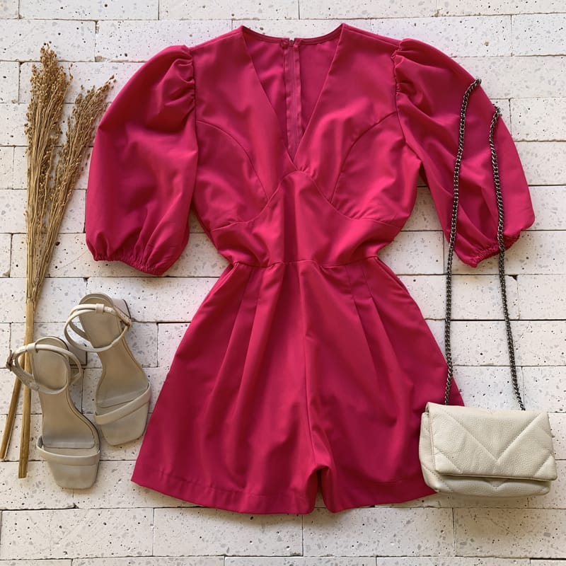 Escolha seu Macaquinho Manguinha Bufante Premium Pink com nosso PROVADOR VIRTUAL