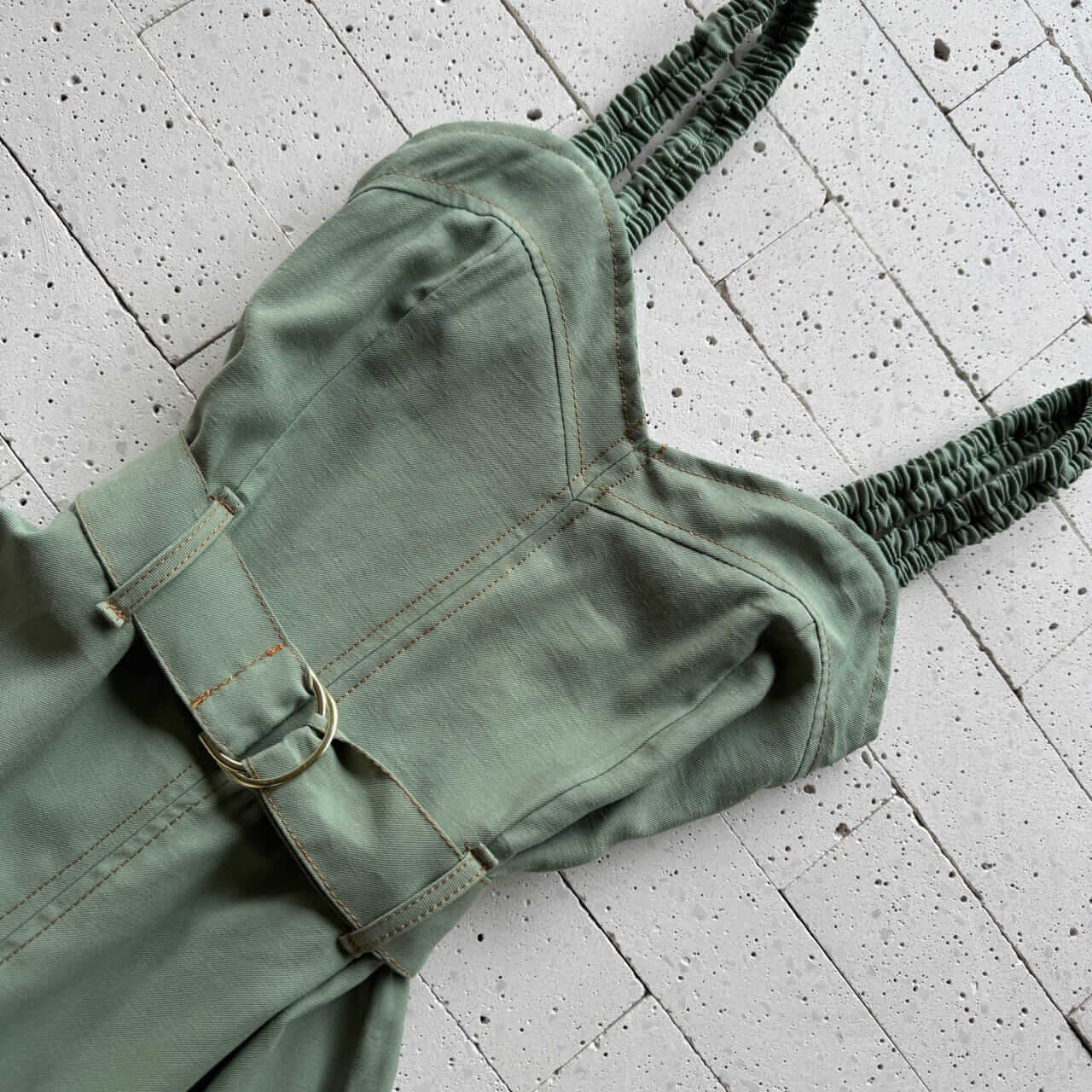 MACAQUINHO MARRANT ALÇA DRAPEADA E CINTO VERDE OLIVA – Sofisticação e Estilo em uma Peça Única
