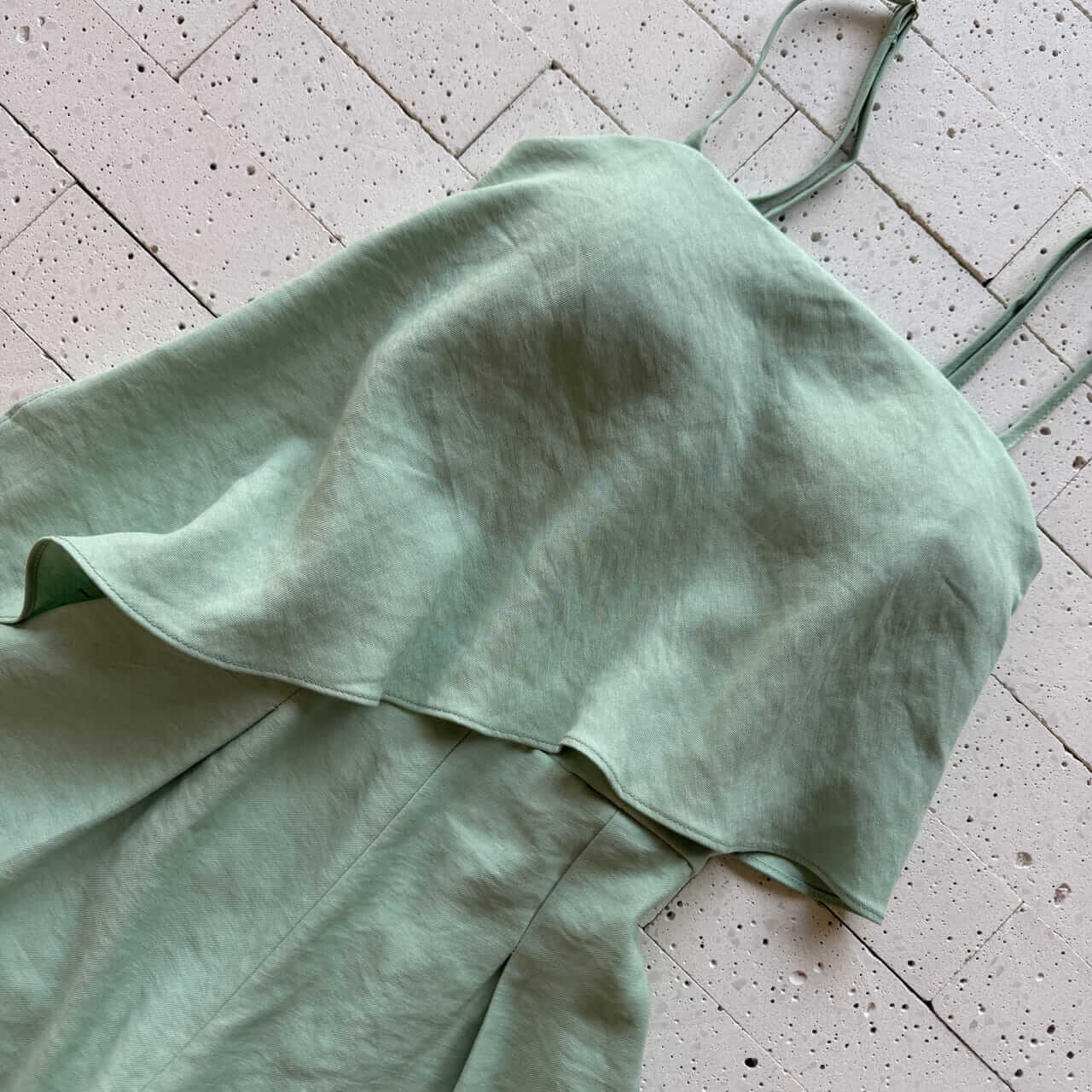 O tom verde traz frescor e elegância ao visual. Combine com sandálias de salto em tons neutros para eventos especiais ou aposte em rasteiras e acessórios naturais para uma produção leve e sofisticada no dia a dia.