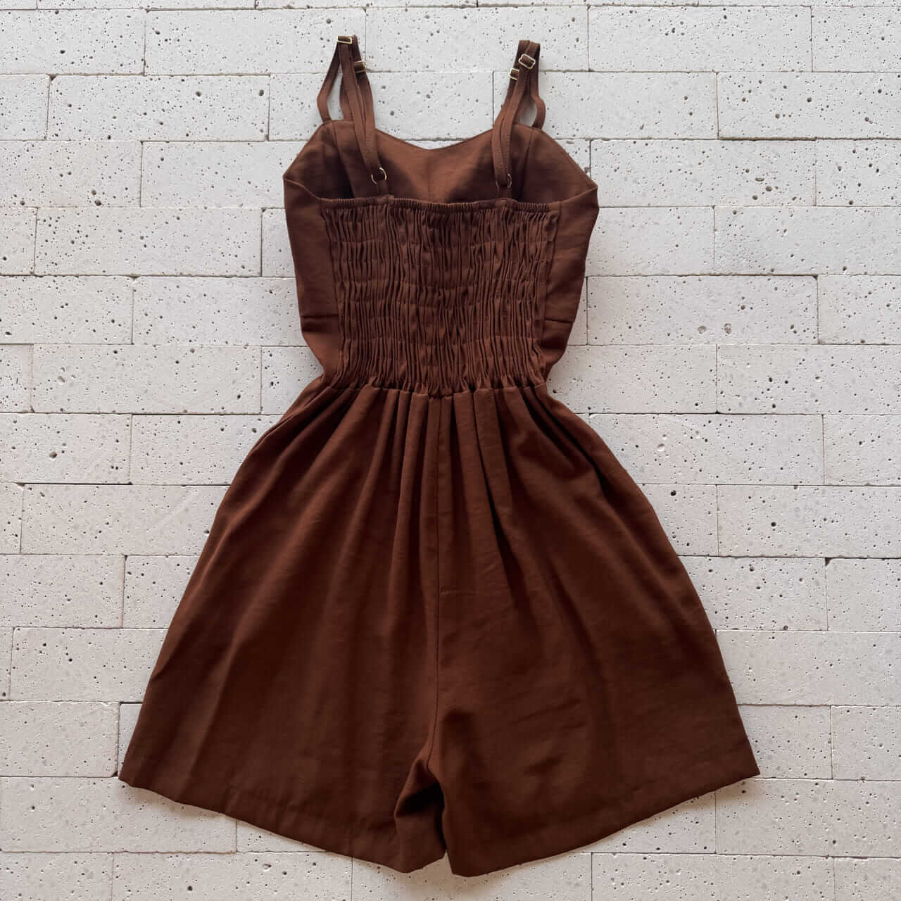 Dondoca_com_br Macaquinho Marrant Detalhe Botoes Na Cintura Cafe