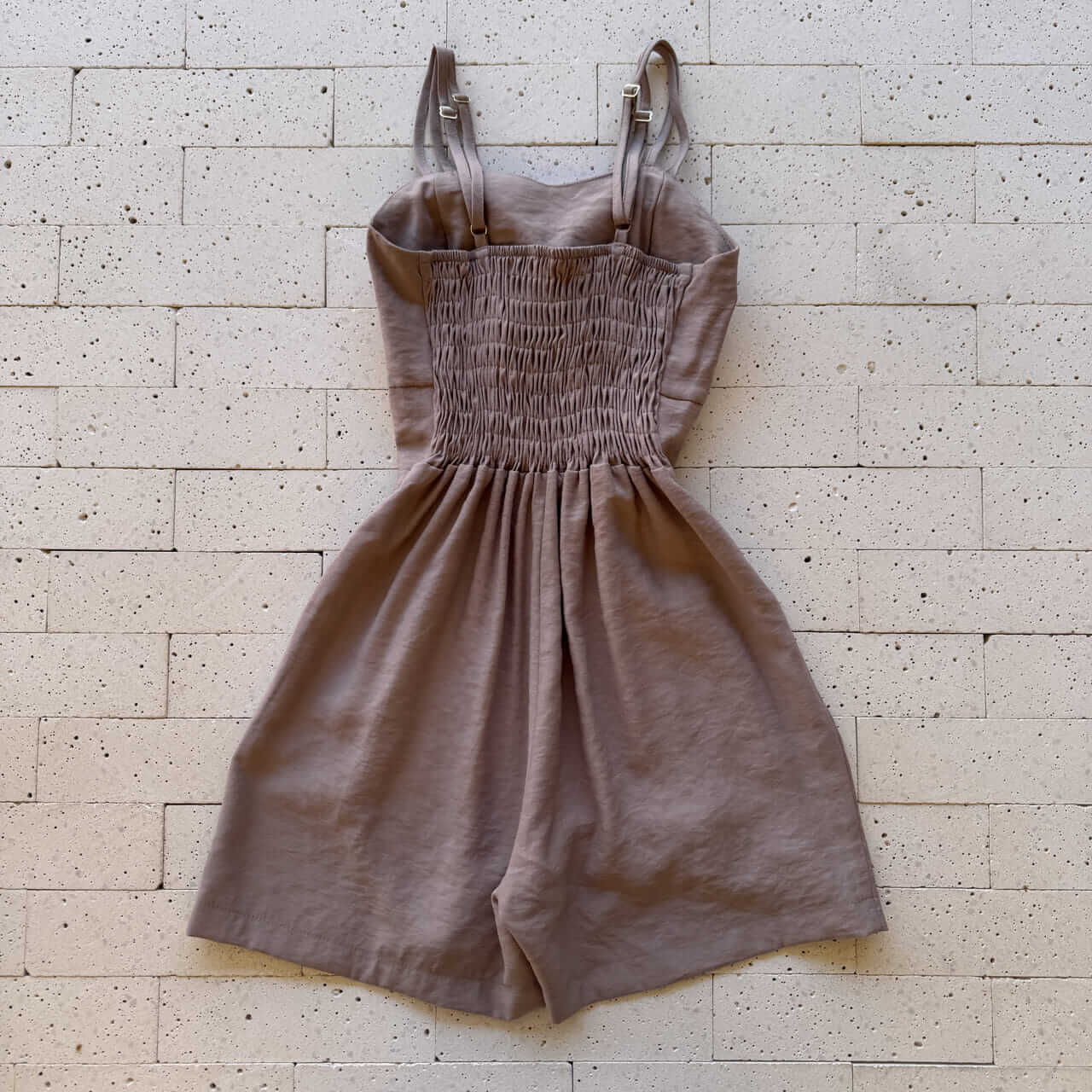 O Macaquinho Marrant Nude é a escolha perfeita para quem busca um visual sofisticado e atemporal. Com alças duplas ajustáveis e bojo embutido, ele oferece sustentação e conforto com elegância. O elástico nas costas garante um caimento perfeito ao corpo, enquanto os botões forrados com aro dourado na cintura valorizam a silhueta com um toque refinado. Sua modelagem ampla na parte inferior proporciona leveza ao movimento e muito charme.
