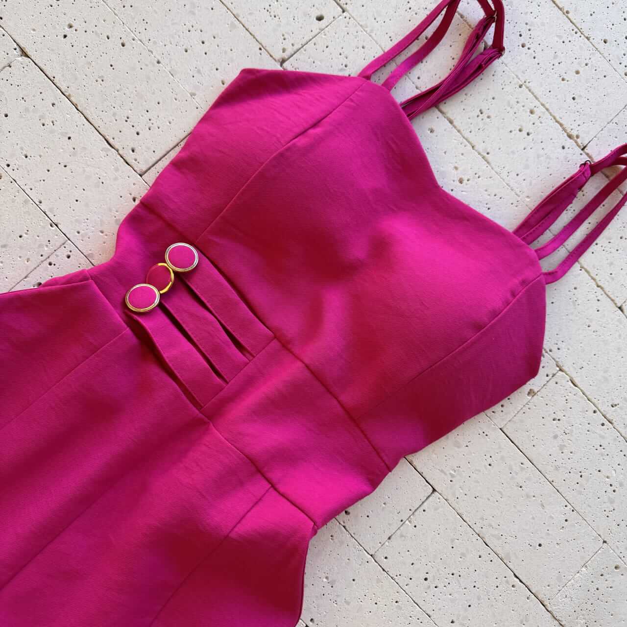 Com um design que valoriza a silhueta, o Macaquinho Marrant Pink é perfeito para quem busca um visual moderno e feminino sem abrir mão do conforto. Produzido em tecido marrant com toque leve e encorpado, ele possui bojo estruturado, elástico nas costas para ajuste ideal e alças duplas finas com regulagem. O destaque fica por conta dos três botões decorativos forrados na cintura, que trazem um charme único à peça. A modelagem com cintura marcada e barra ampla garante liberdade de movimentos e muito estilo para os dias mais quentes.