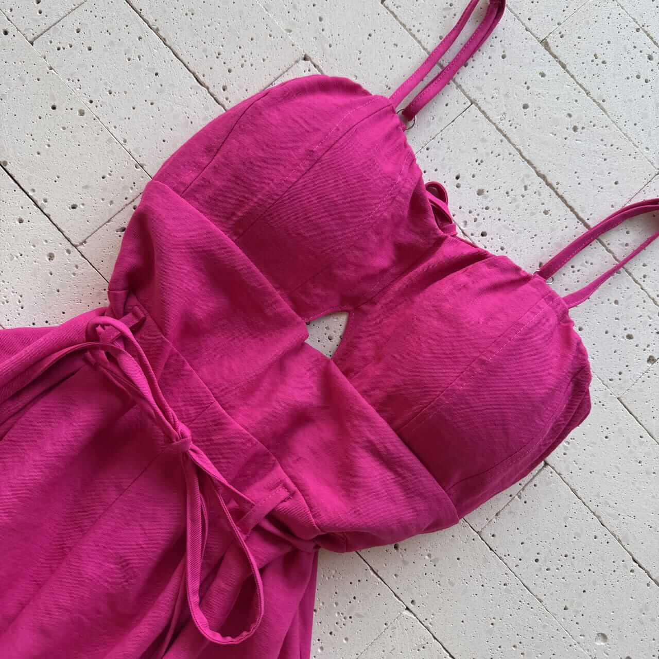 Perfeito para ocasiões de dia ou de noite, combine com sandálias de tiras ou anabelas, e finalize com acessórios em dourado para realçar o tom vibrante do pink. Um look autêntico, cheio de energia!
