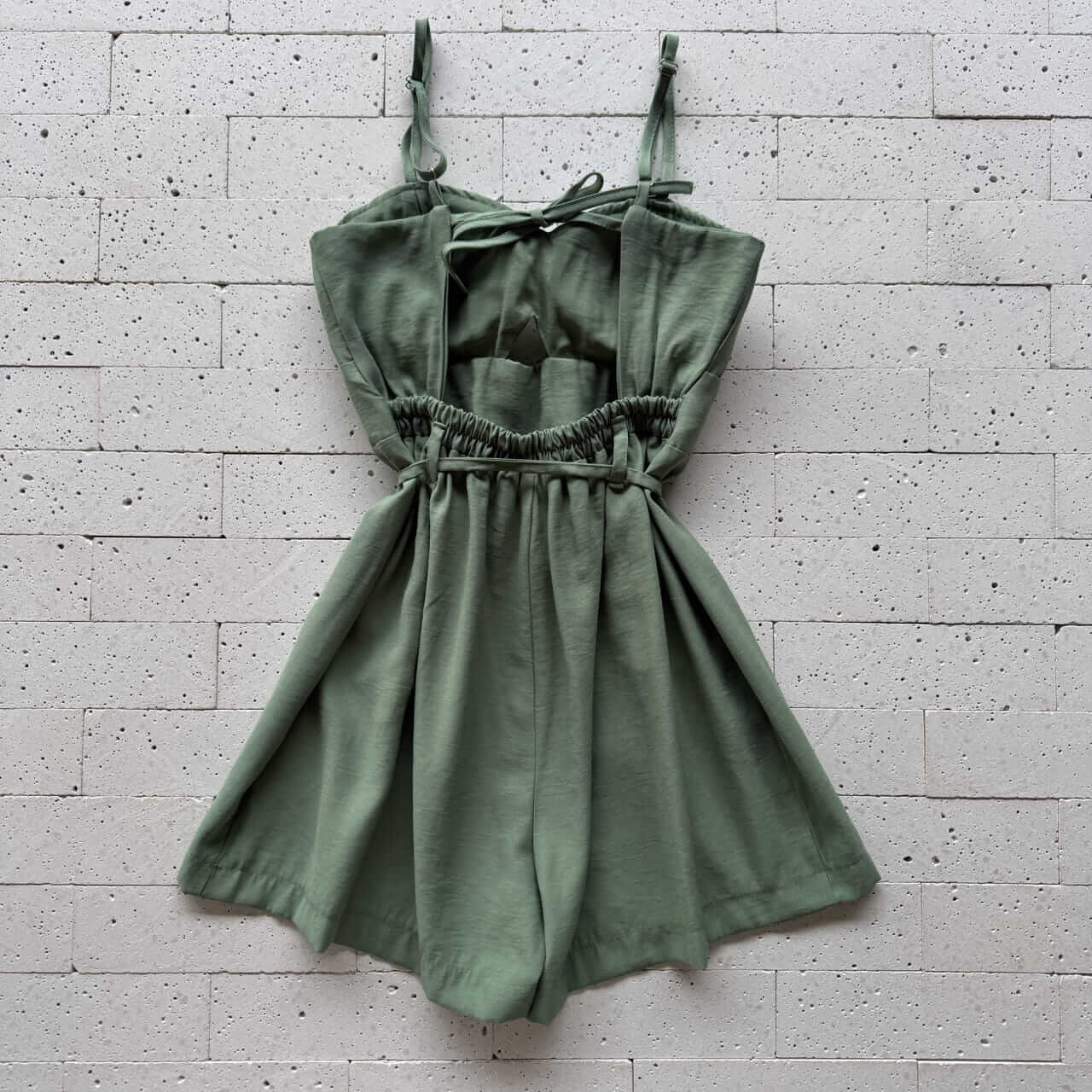 Combine o macaquinho verde oliva com sandálias de tiras e bolsa neutra para um visual leve e elegante. Nos dias mais frescos, adicione uma jaqueta jeans ou um cardigan de tricô. Ideal para passeios, almoços ao ar livre e encontros casuais com toque de sofisticação.
