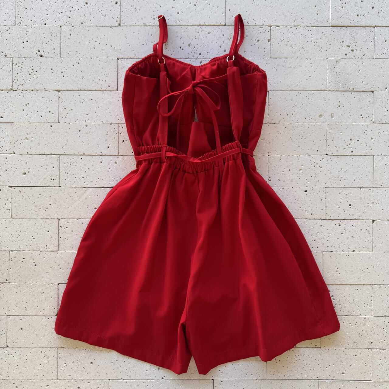 O Macaquinho Marrant Vermelho é a escolha perfeita para quem busca elegância com um toque sensual e moderno. Feito em tecido leve e fluido, ele conta com bojo estruturado e vinco no busto que valorizam o colo, além de alças finas ajustáveis e amarração nas costas que proporcionam sustentação e ajuste perfeito. A parte de trás possui elástico na cintura que garante conforto e caimento impecável. O detalhe do recorte central e o cordão na cintura completam o visual com charme e feminilidade.