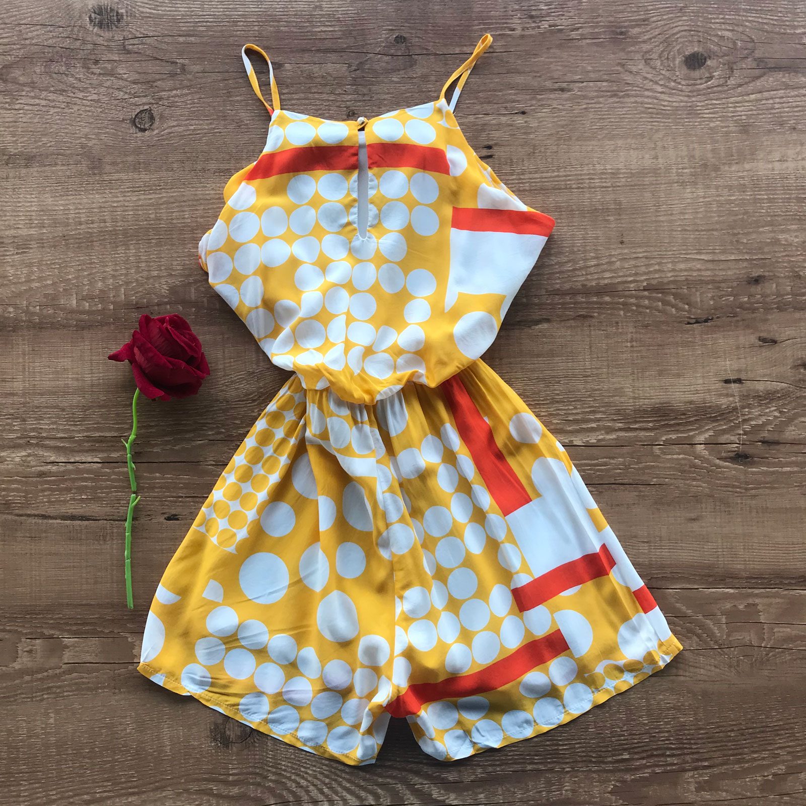 O Macaquinho Viscose Estampado Amarelo é vibrante e vai te acompanhar no verão que se aproxima! Confeccionado em viscose, é leve e o tecido é daqueles super confortáveis! O comprimento é curto, a peça é totalmente forrada. As alças são finas e sem regulagem. Possui abertura nas costas com fechamento em botão com pérola. O decote é reto e a peça não apresenta bojo. Conta com elástico na cintura que ajuda no vestir e na modelagem do macaquinho.