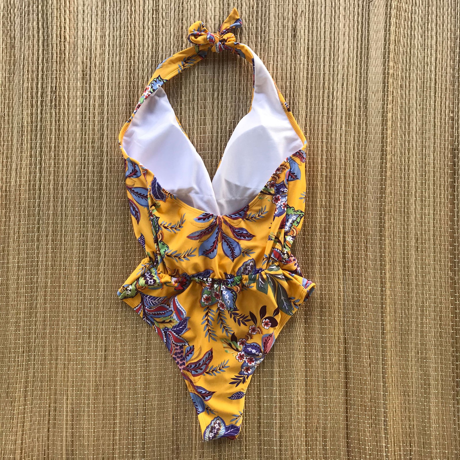 O Maiô Transpassado Mostarda é uma peça confortável e charmosa. Fabricado em tecido de altíssima qualidade, é 100% forrado e possui bojo para sustentação. Possui amarração nas alças na parte das costas. Em sua frente, possui detalhe transpassado e elástico na cintura, com amarração. As costas são cavadas. Cheio de estilo!