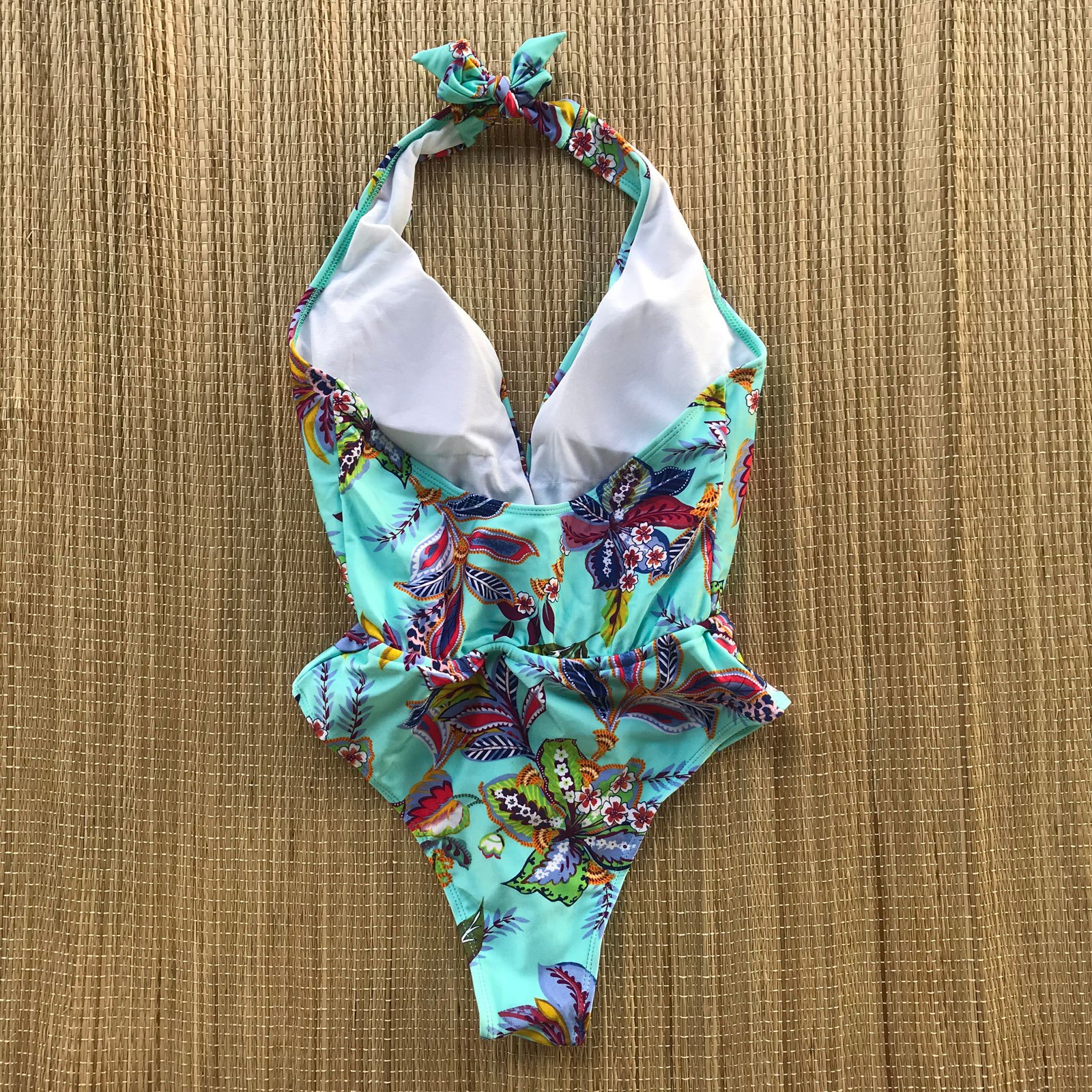 O Maiô Transpassado Verde Água é confortável e rico em detalhes. Confeccionado em tecido de altíssima qualidade, é totalmente forrado e possui bojo para sustentação. Conta com amarração nas alças superiores. Na frente, traz detalhe transpassado e elástico na cintura com amarração, charmoso e que ajuda na modelagem. As costas são cavadas. Super estiloso!