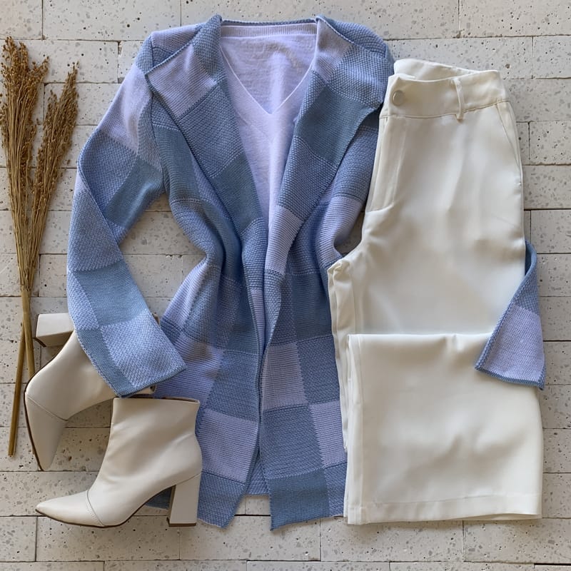 MAXI CARDIGAN XADREZ AZUL BEBE