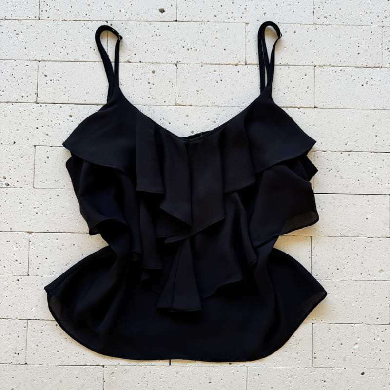 A Regata Boho Chifon Luxo Preta é uma peça essencial para quem busca charme e versatilidade em um único look. Com babados fluidos que caem em camadas assimétricas na parte frontal, essa regata traz movimento e leveza ao visual. O tecido em chifon confere um toque suave e sofisticado, enquanto as alças finas ajustáveis proporcionam ajuste personalizado ao corpo. A modelagem levemente acinturada valoriza a silhueta sem marcar, tornando essa peça perfeita para composições do dia à noite.