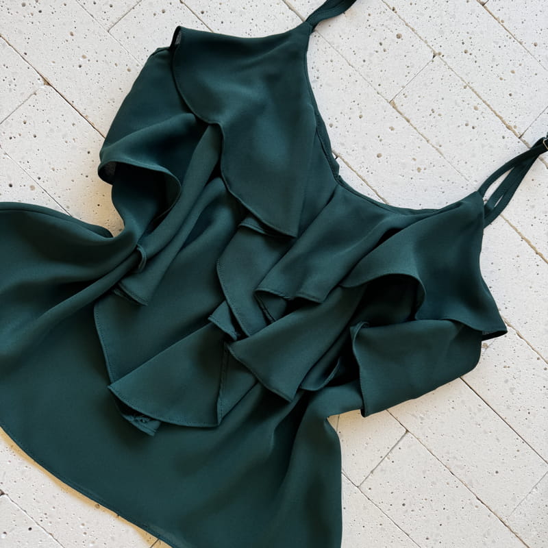 REGATA BOHO CHIFON LUXO VERDE – Movimento e Elegância com Babados Irregulares